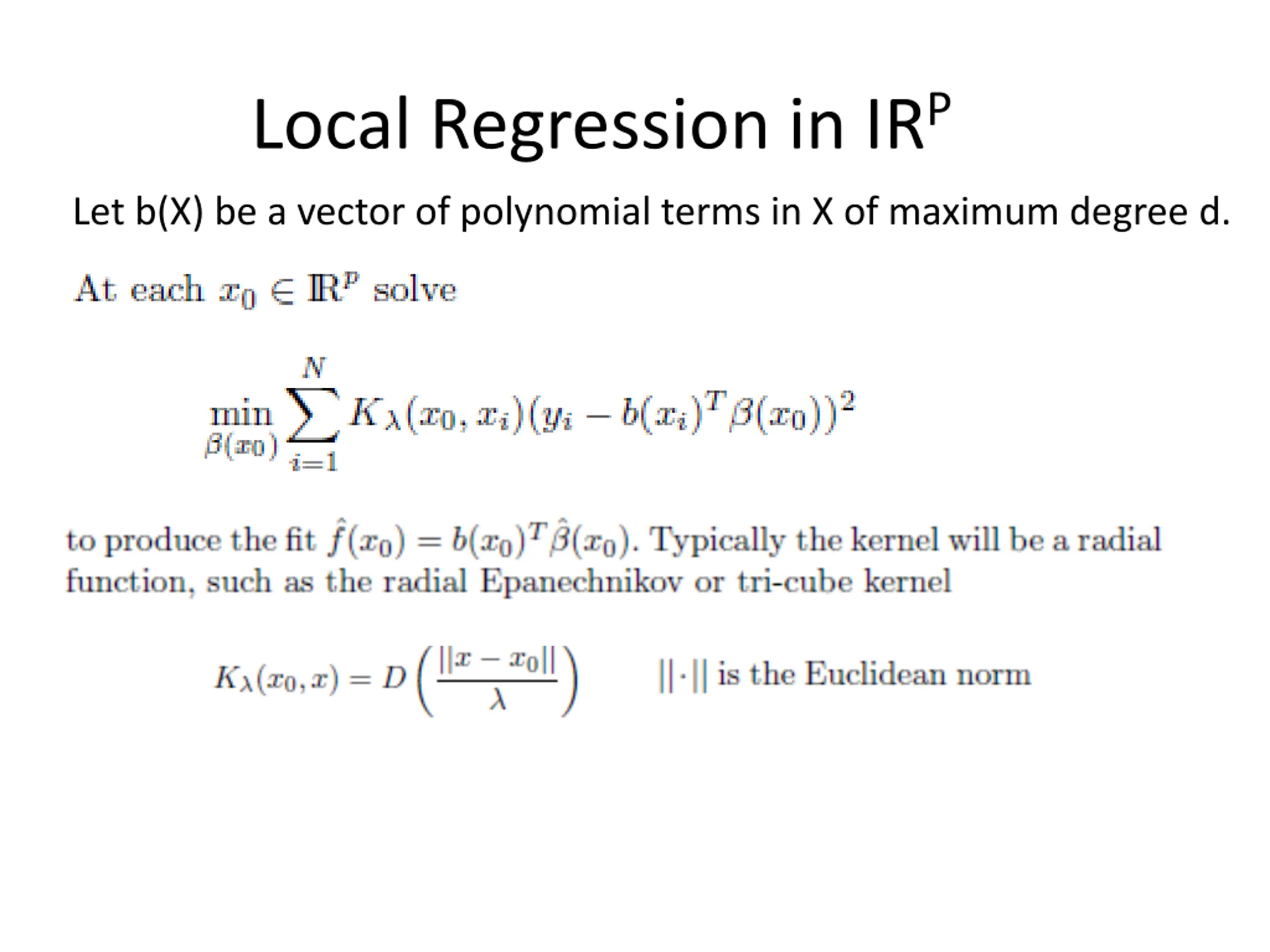 Local Regression in IRP Let b(X) be a vector of polynomial terms in X of maximum degree d.