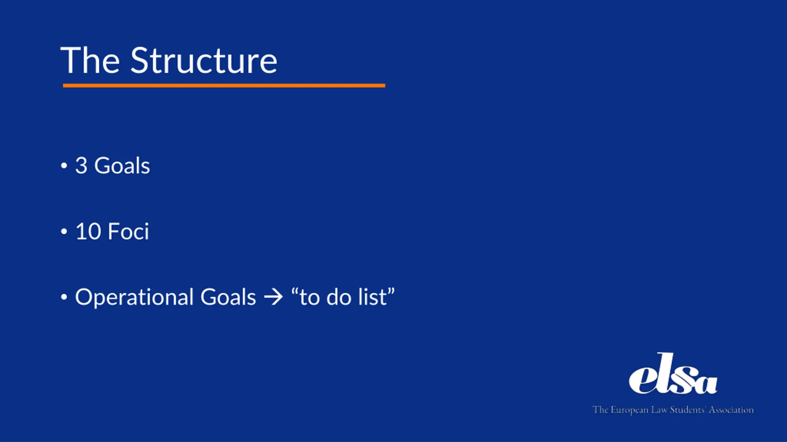 The Structure 3 Goals 10 Foci Operational Goals to do list
