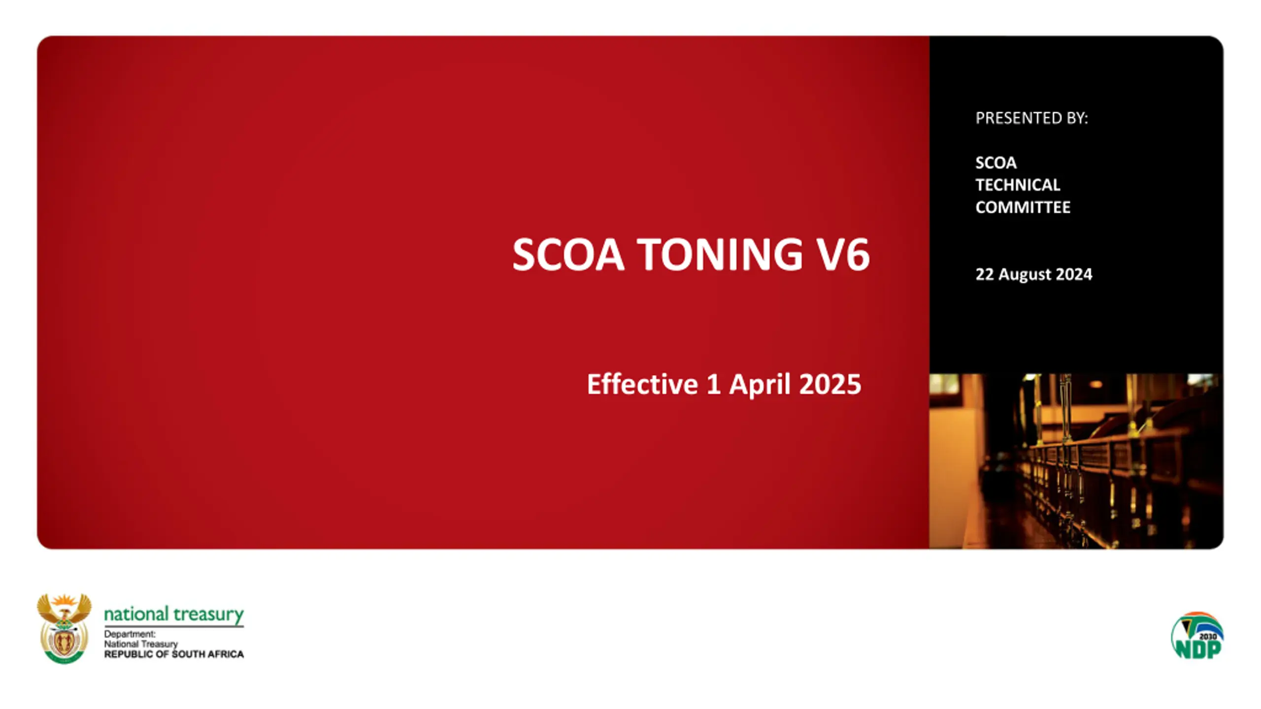 PRESENTED BY: SCOA TECHNICAL COMMITTEE SCOA TONING V6 22 August 2024 Effective 1 April 2025