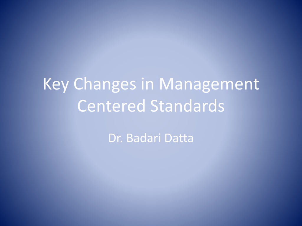Key Changes in Management Centered Standards by Dr. Badari Datta