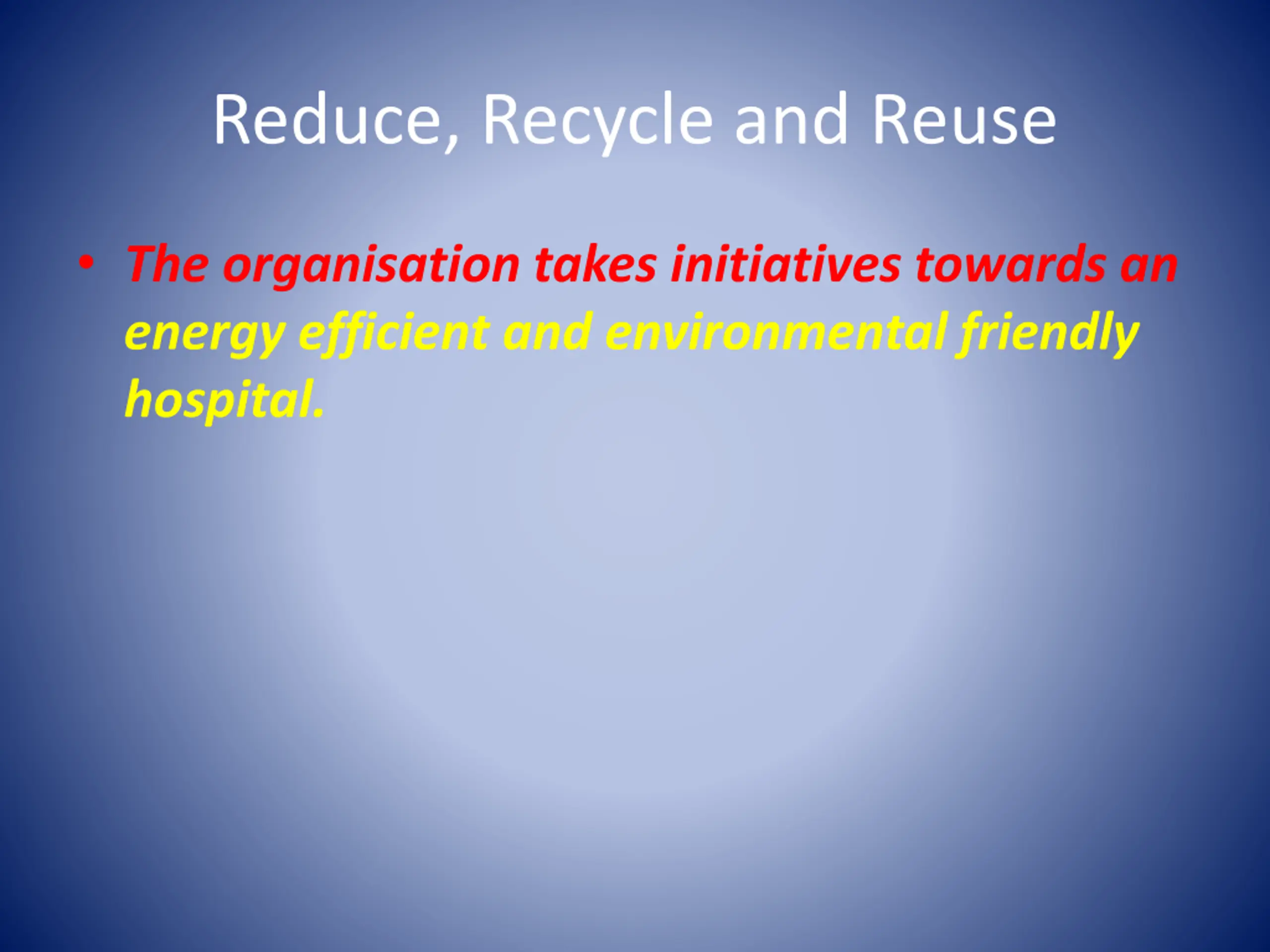 Reduce, Recycle and Reuse The organisation takes initiatives towards an energy efficient and environmental friendly hospital.