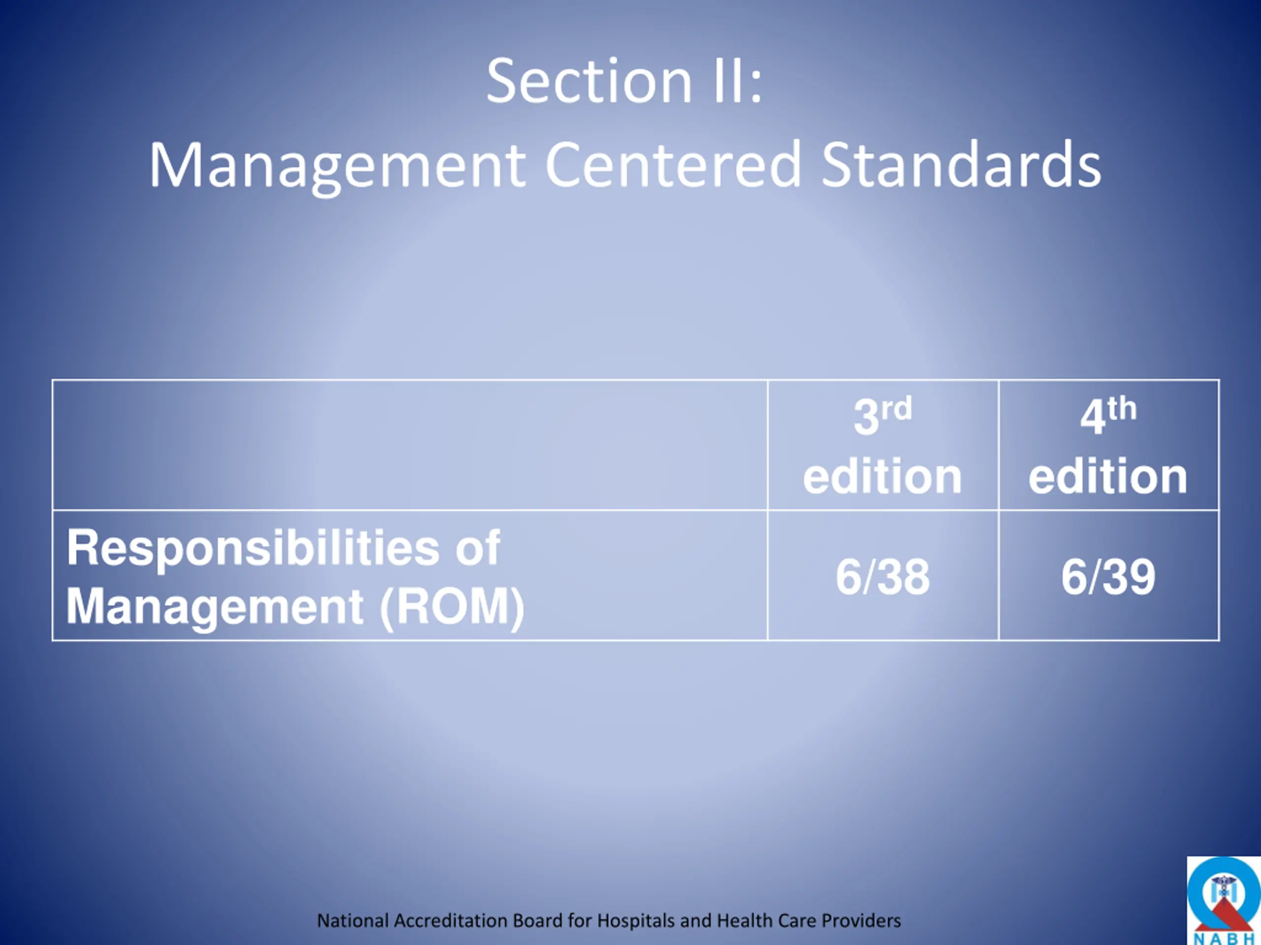 Section II: Management Centered Standards 3rd 4th edition edition Responsibilities of Management (ROM) 6/38 6/39 National Accreditation Board for Hospitals and Health Care Providers