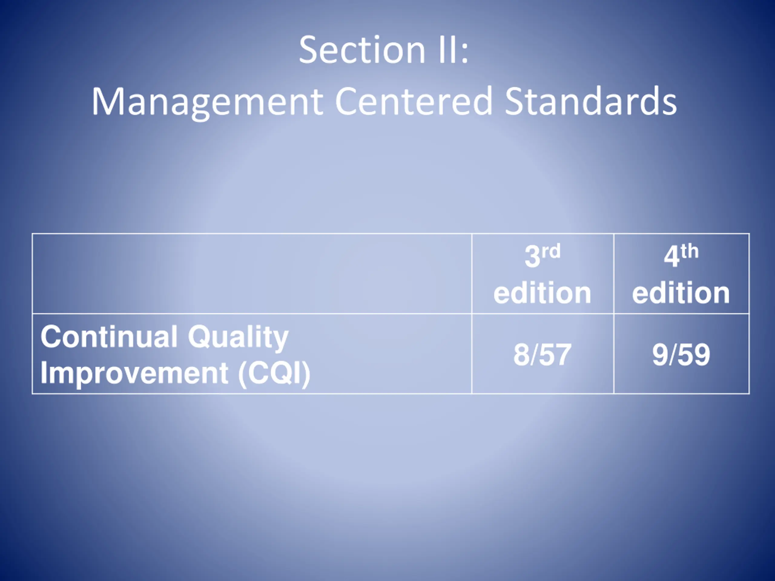Section II: Management Centered Standards 3rd 4th edition edition Continual Quality Improvement (CQI) 8/57 9/59