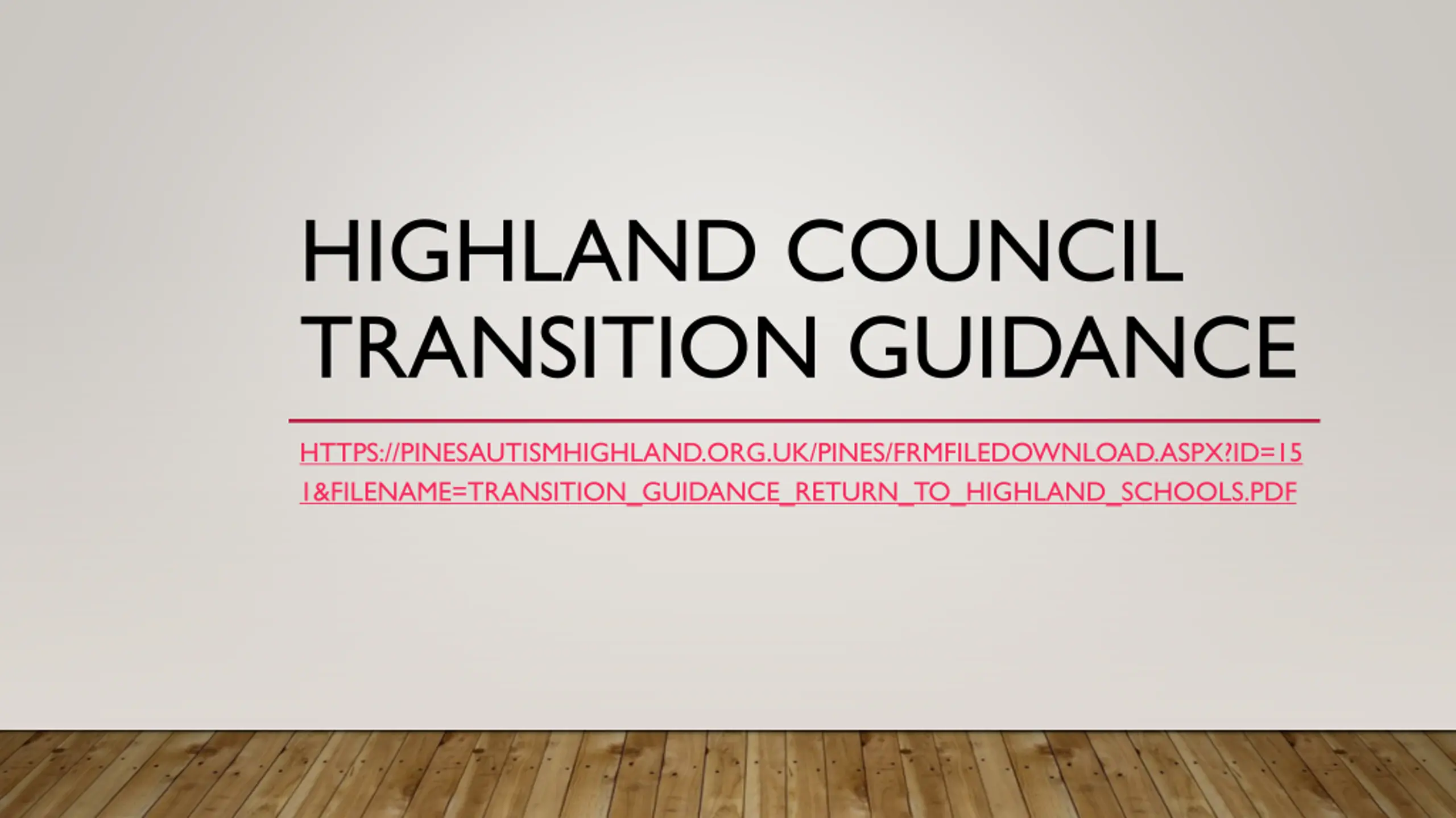 HIGHLAND COUNCIL TRANSITION GUIDANCE HTTPS://PINESAUTISMHIGHLAND.ORG.UK/PINES/FRMFILEDOWNLOAD.ASPX?ID=15 1&FILENAME=TRANSITION_GUIDANCE_RETURN_TO_HIGHLAND_SCHOOLS.PDF