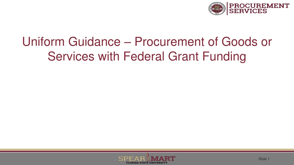 Uniform Guidance Procurement of Goods or Services with Federal Grant Funding Slide 1