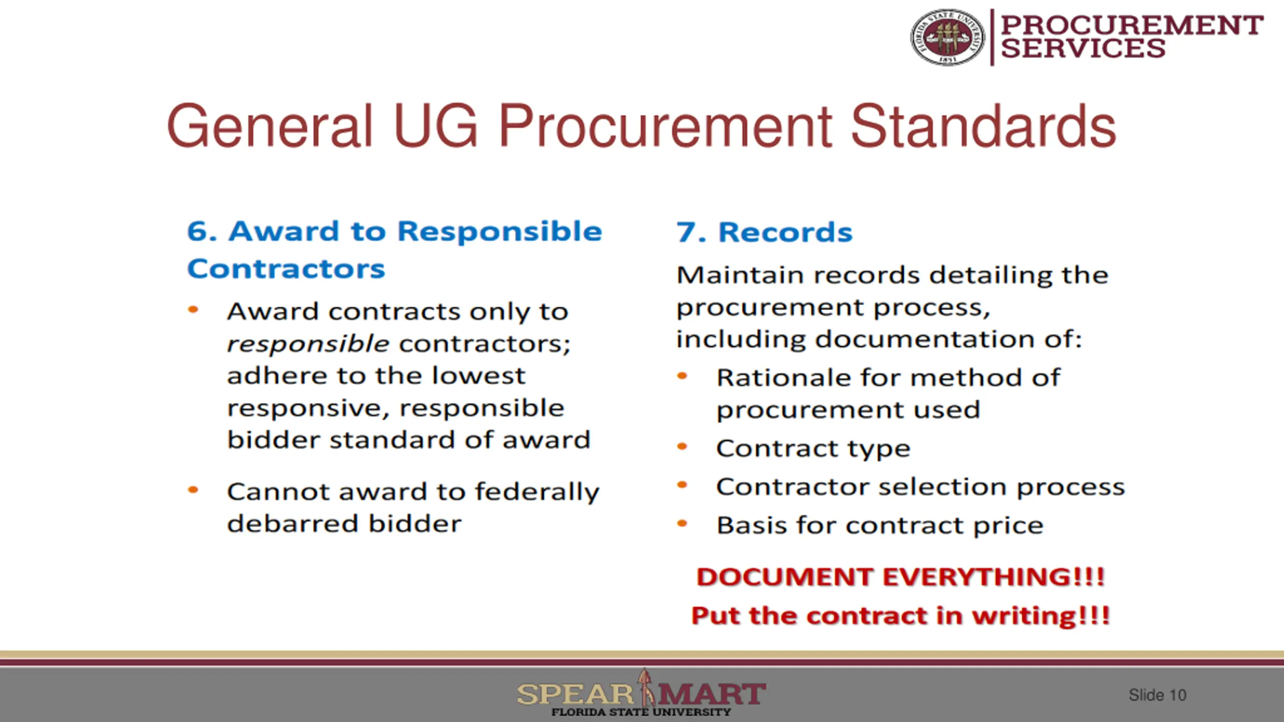 General UG Procurement Standards Slide 10