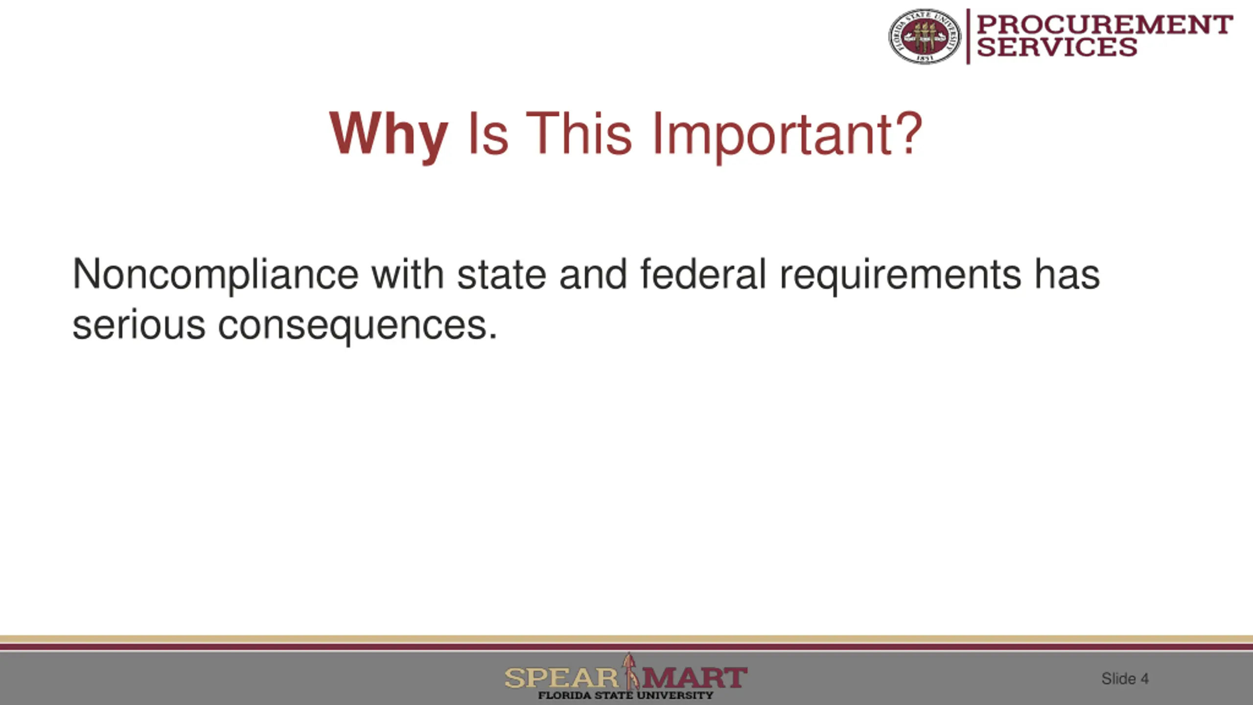 Why Is This Important? Noncompliance with state and federal requirements has serious consequences. Slide 4