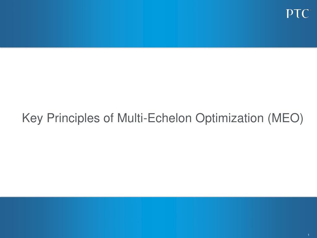 Value Creation in Multi-echelon Optimization MEO can generate 20-30% in inventory savings on top of item based planning due to following six value generating principles: 1. Accurate Modeling of the Supply Chain 2. Part Mix Optimization 3. Multi-Echelon Optimization 4. Prevent Churn and Minimize New buy 5. Incorporate Business Rules in Optimization 6. Business Focused Service Targeting 4