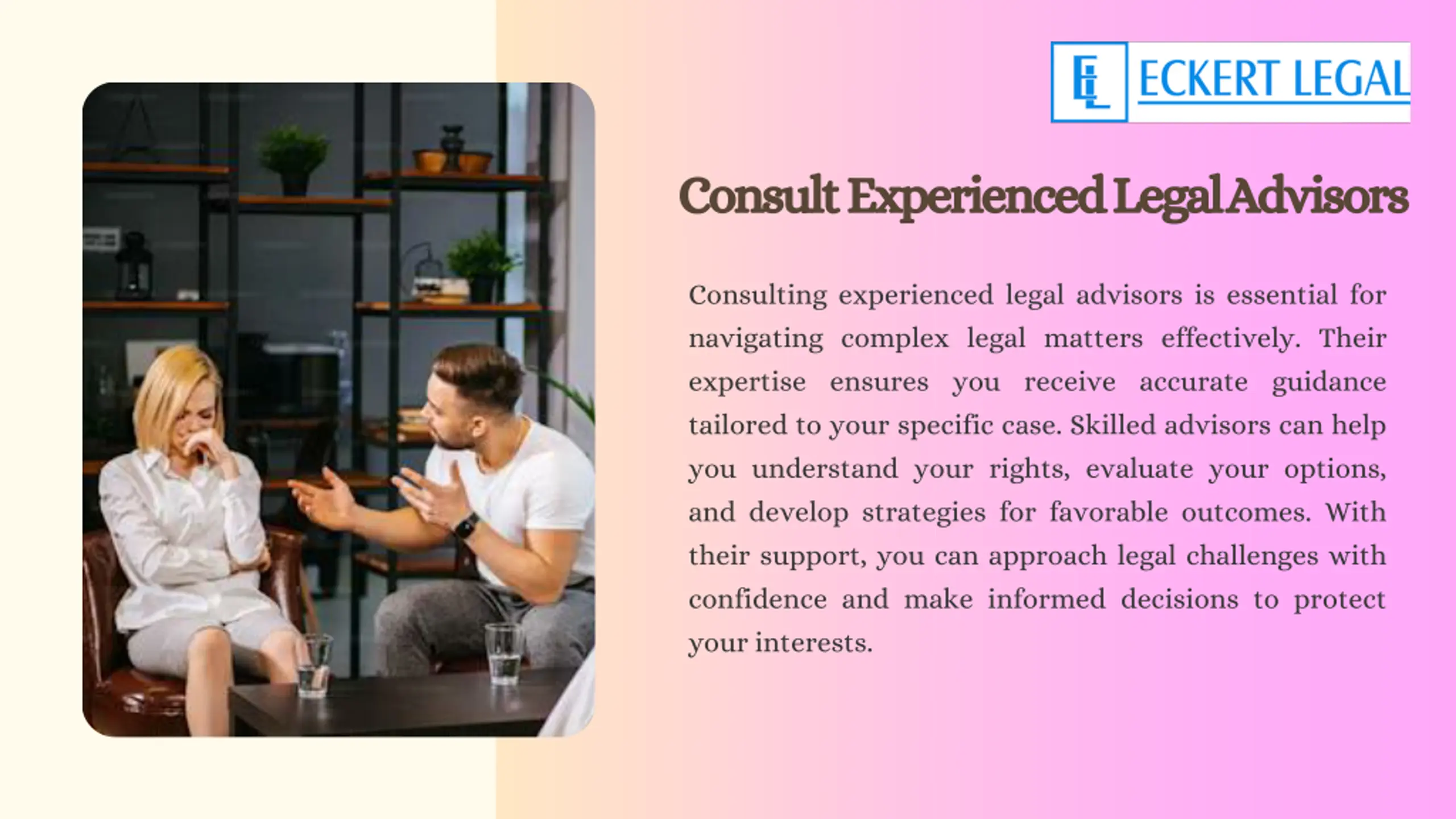 Consult Experienced Legal Advisors Consulting experienced legal advisors is essential for navigating complex legal matters effectively. Their expertise ensures you receive accurate guidance tailored to your specific case. Skilled advisors can help you understand your rights, evaluate your options, and develop strategies for favorable outcomes. With their support, you can approach legal challenges with confidence and make informed decisions to protect your interests.