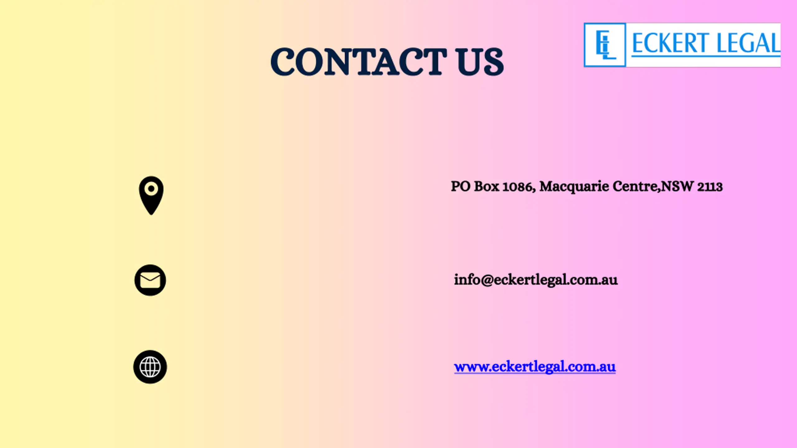 CONTACT US PO Box 1086, Macquarie Centre,NSW 2113 info@eckertlegal.com.au www.eckertlegal.com.au
