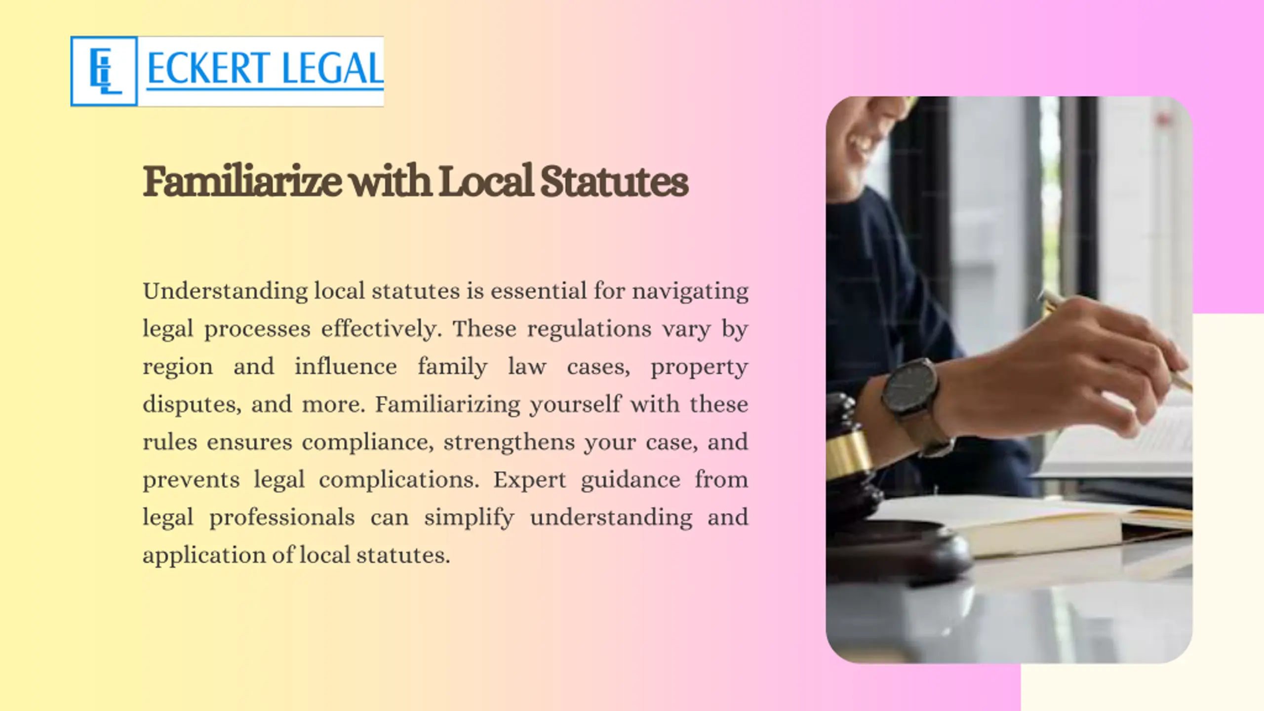 Familiarize with Local Statutes Understanding local statutes is essential for navigating legal processes effectively. These regulations vary by region and influence family law cases, property disputes, and more. Familiarizing yourself with these rules ensures compliance, strengthens your case, and prevents legal complications. Expert guidance from legal professionals can simplify understanding and application of local statutes.