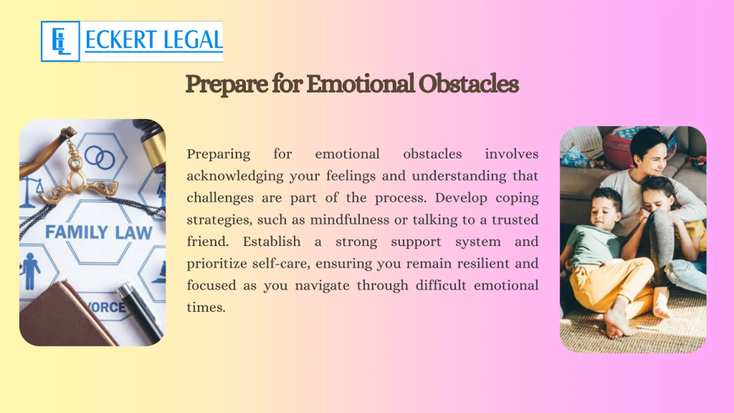 Prepare for Emotional Obstacles Preparing acknowledging your feelings and understanding that challenges are part of the process. Develop coping strategies, such as mindfulness or talking to a trusted friend. Establish a strong support system and prioritize self-care, ensuring you remain resilient and focused as you navigate through difficult emotional times. for emotional obstacles involves