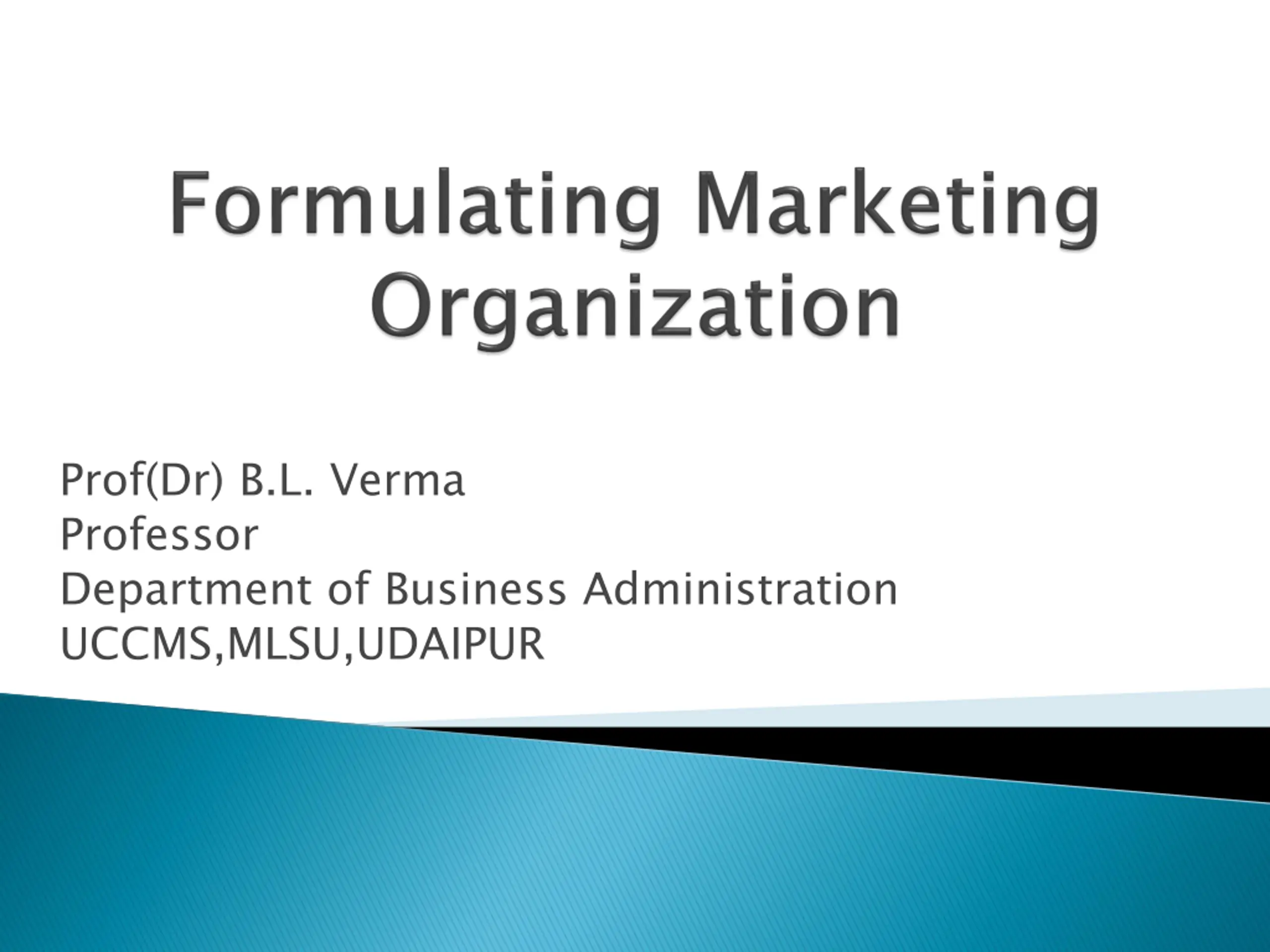 Prof(Dr) B.L. Verma Professor Department of Business Administration UCCMS,MLSU,UDAIPUR