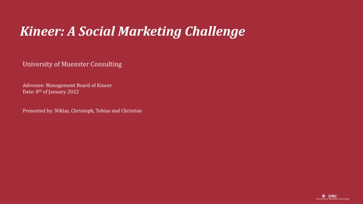 Kineer: A Social Marketing Challenge University of Muenster Consulting Adressee: Management Board of Kineer Date: 8thof January 2022 Presented by: Niklas, Christoph, Tobias and Christian UMC University of Muenster Consulting