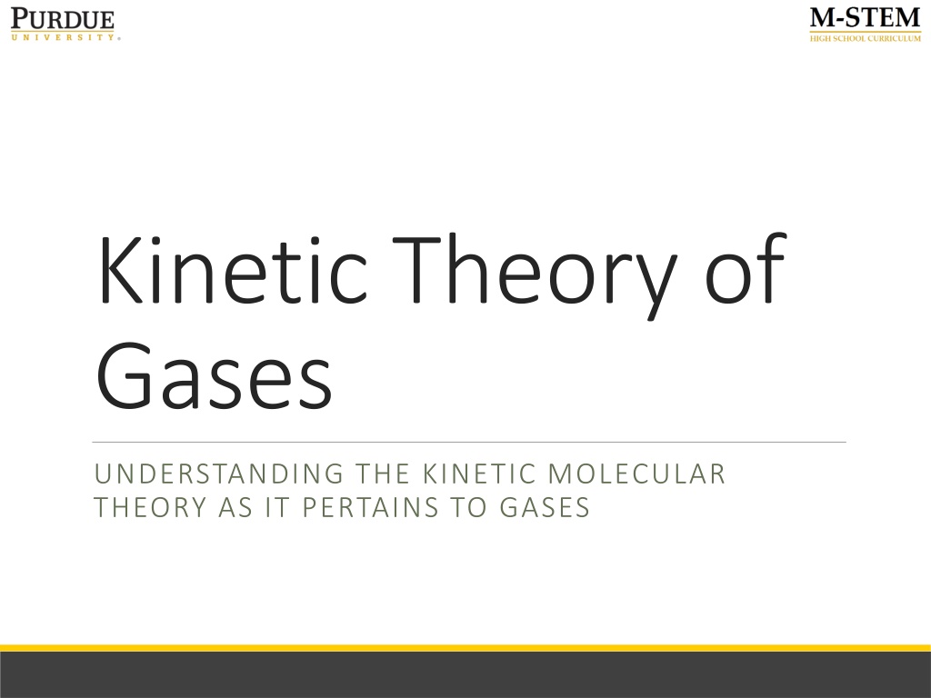 Kinetic Theory of Gases UNDERSTANDING THE KINETIC MOLECULAR THEORY AS IT PERTAINS TO GASES