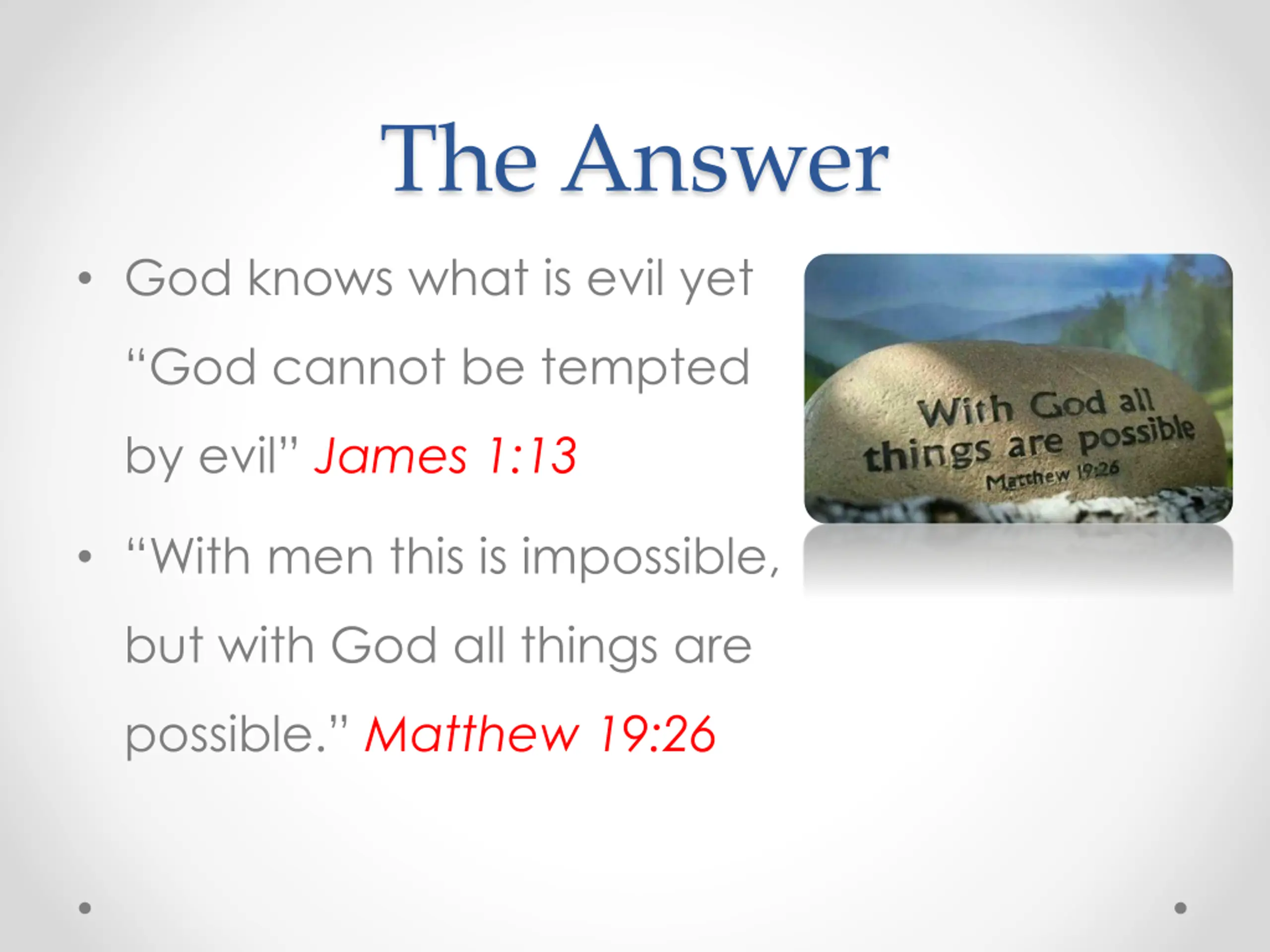 The Answer God knows what is evil yet http://www.lovethispic.com/uploaded_images/68090-With-God-All-Things-Are-Possible.jpg God cannot be tempted by evil James 1:13 With men this is impossible, but with God all things are possible. Matthew 19:26