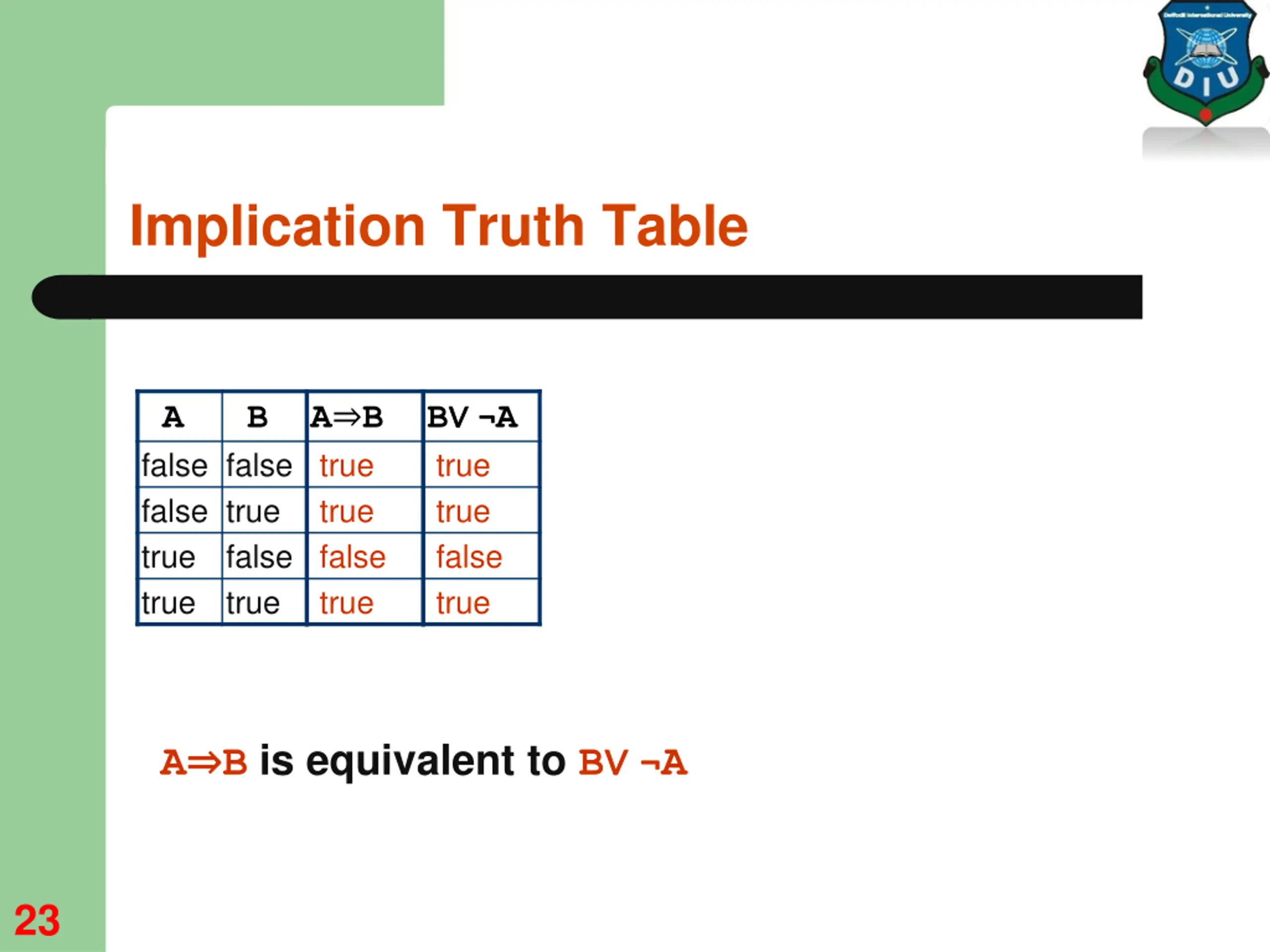 Implication Truth Table A B A B true true false true B A true true false true false false false true true true false true A B is equivalent to B A 23