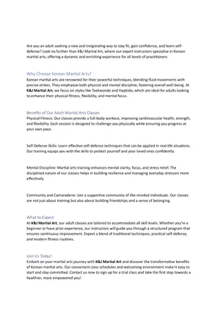knjkummoomartialart offers adult martial arts training in Westerville, designed to improve physical fitness, mental clarity, and self-defense skills. Our experienced instructors provide personalized attention in a supportive environment, helping you to master techniques at your own pace. Whether you're a beginner or advanced practitioner, our classes cater to all skill levels, promoting discipline, confidence, and overall well-being. //knjkummoomartialart.com/n