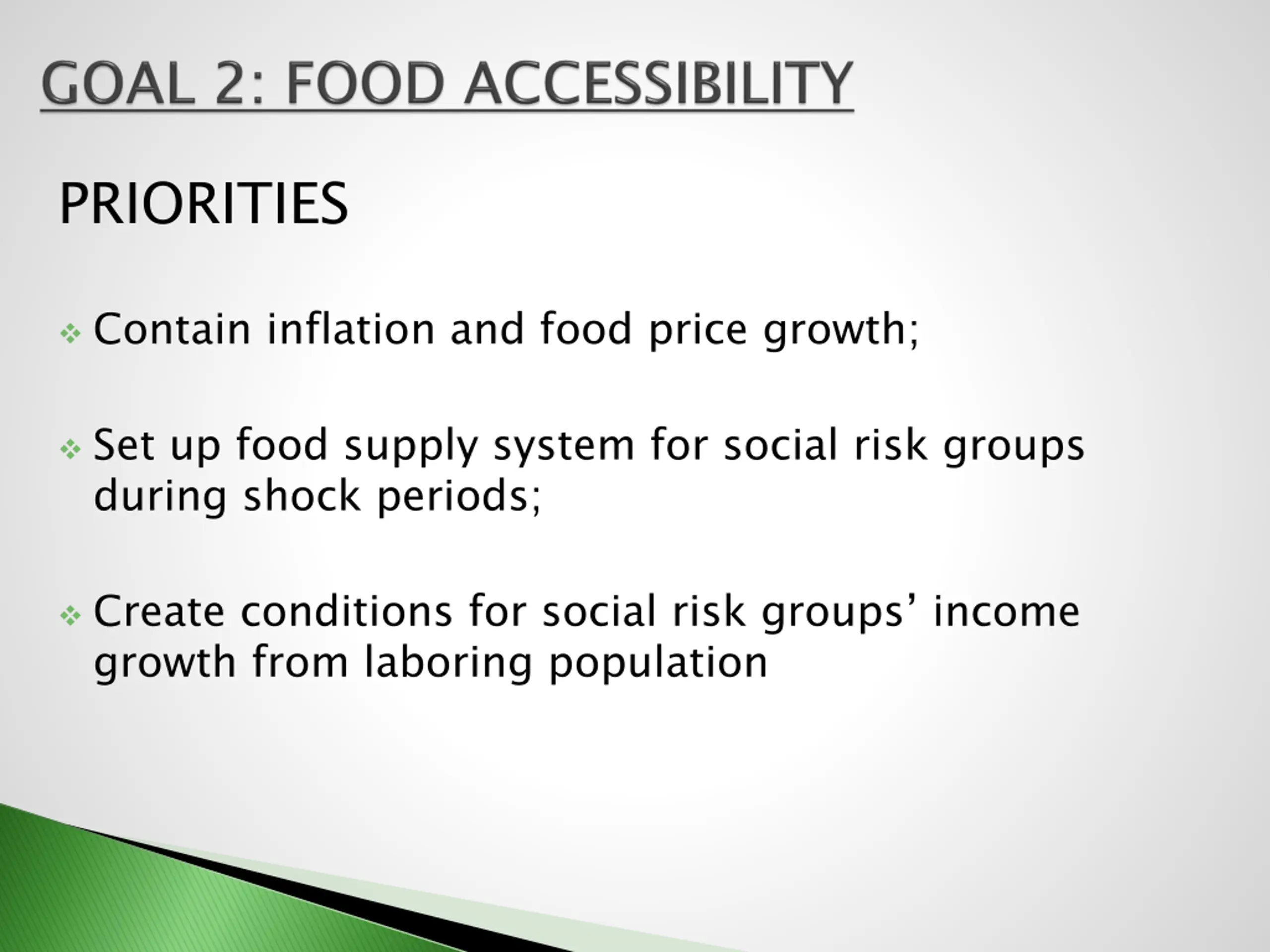 PRIORITIES Contain inflation and food price growth; Set up food supply system for social risk groups during shock periods; Create conditions for social risk groups income growth from laboring population