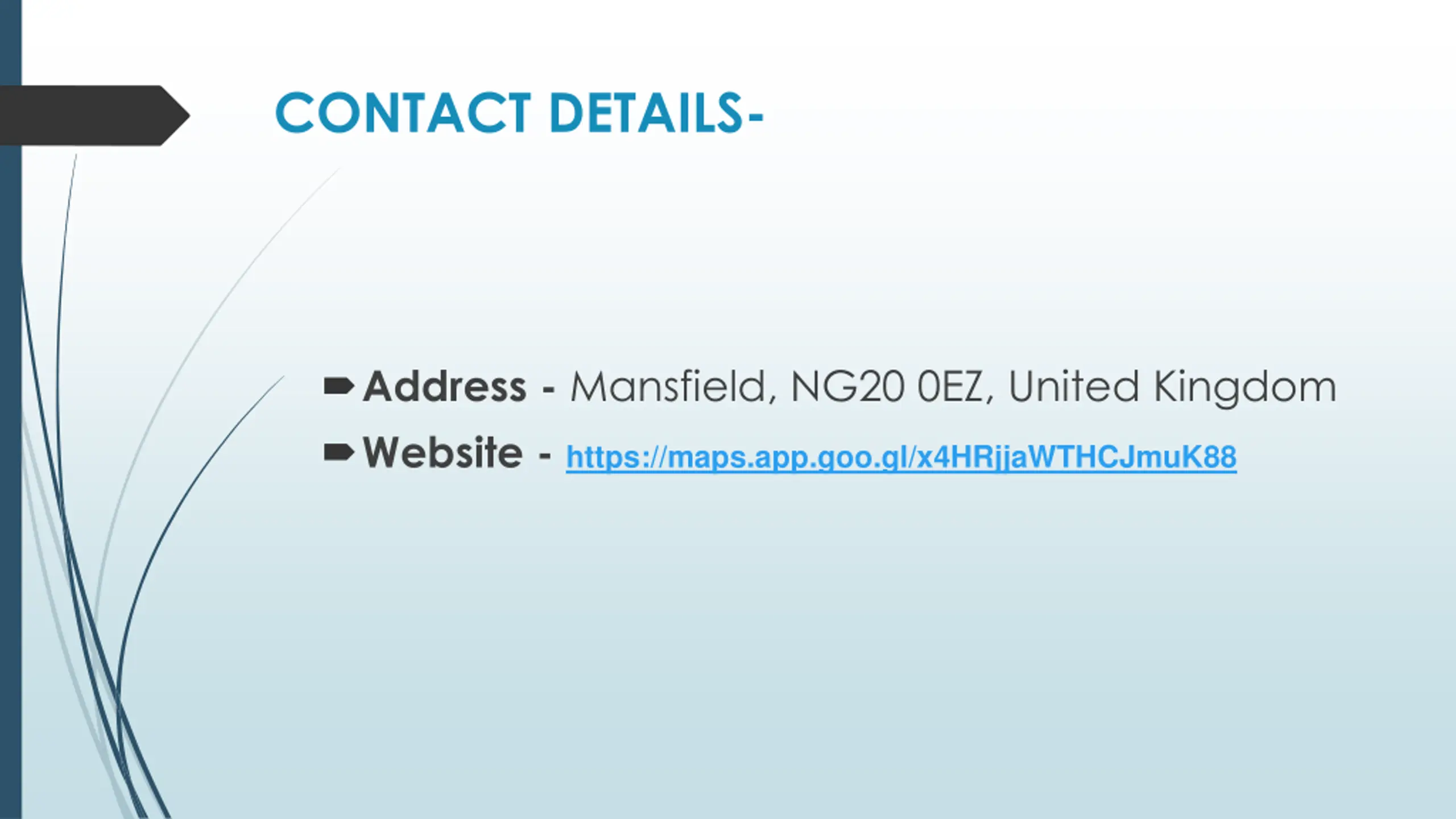 CONTACT DETAILS- Address - Mansfield, NG20 0EZ, United Kingdom Website - https://maps.app.goo.gl/x4HRjjaWTHCJmuK88