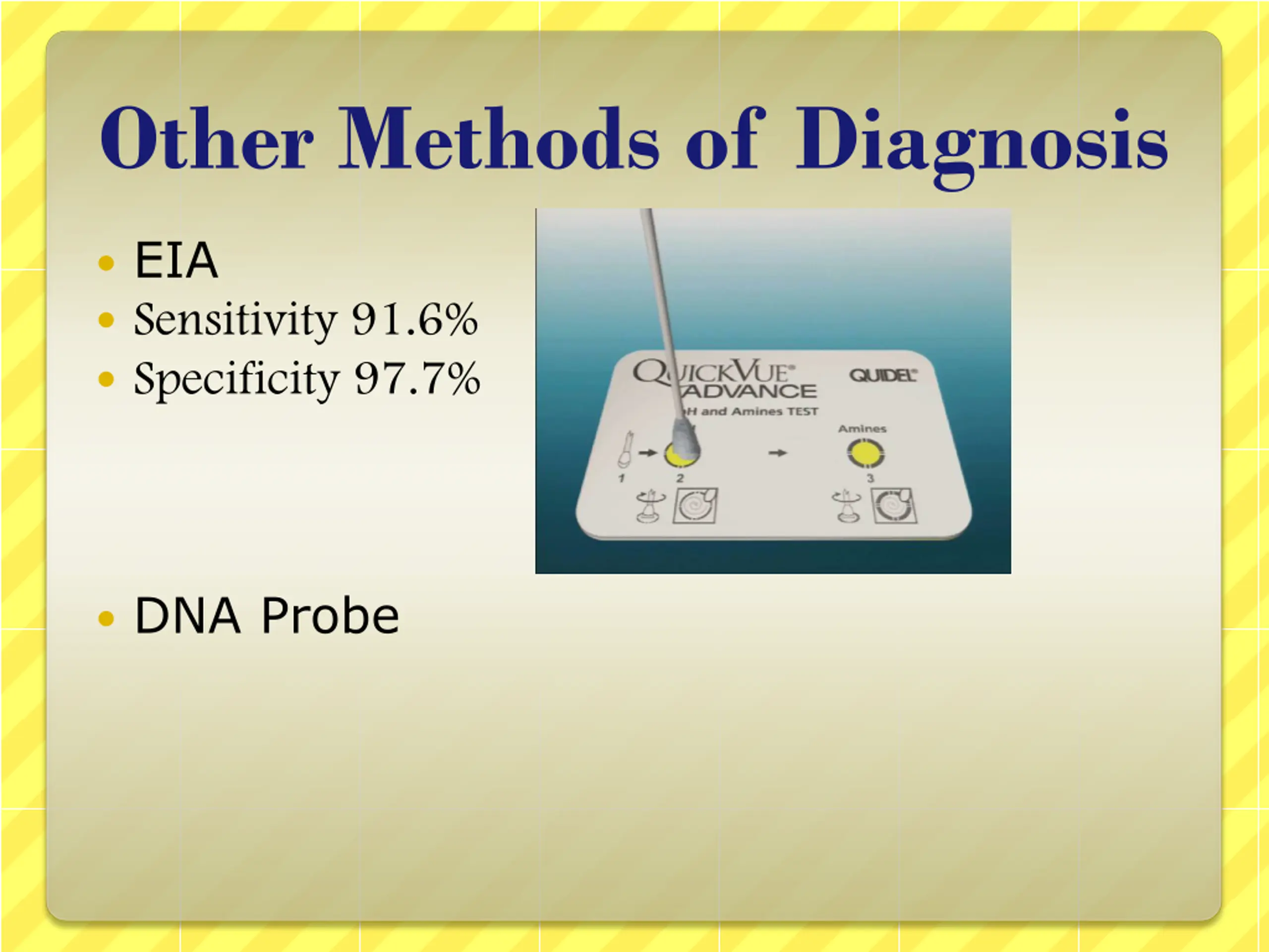 Other Methods of Diagnosis EIA Sensitivity 91.6% Specificity 97.7% DNA Probe