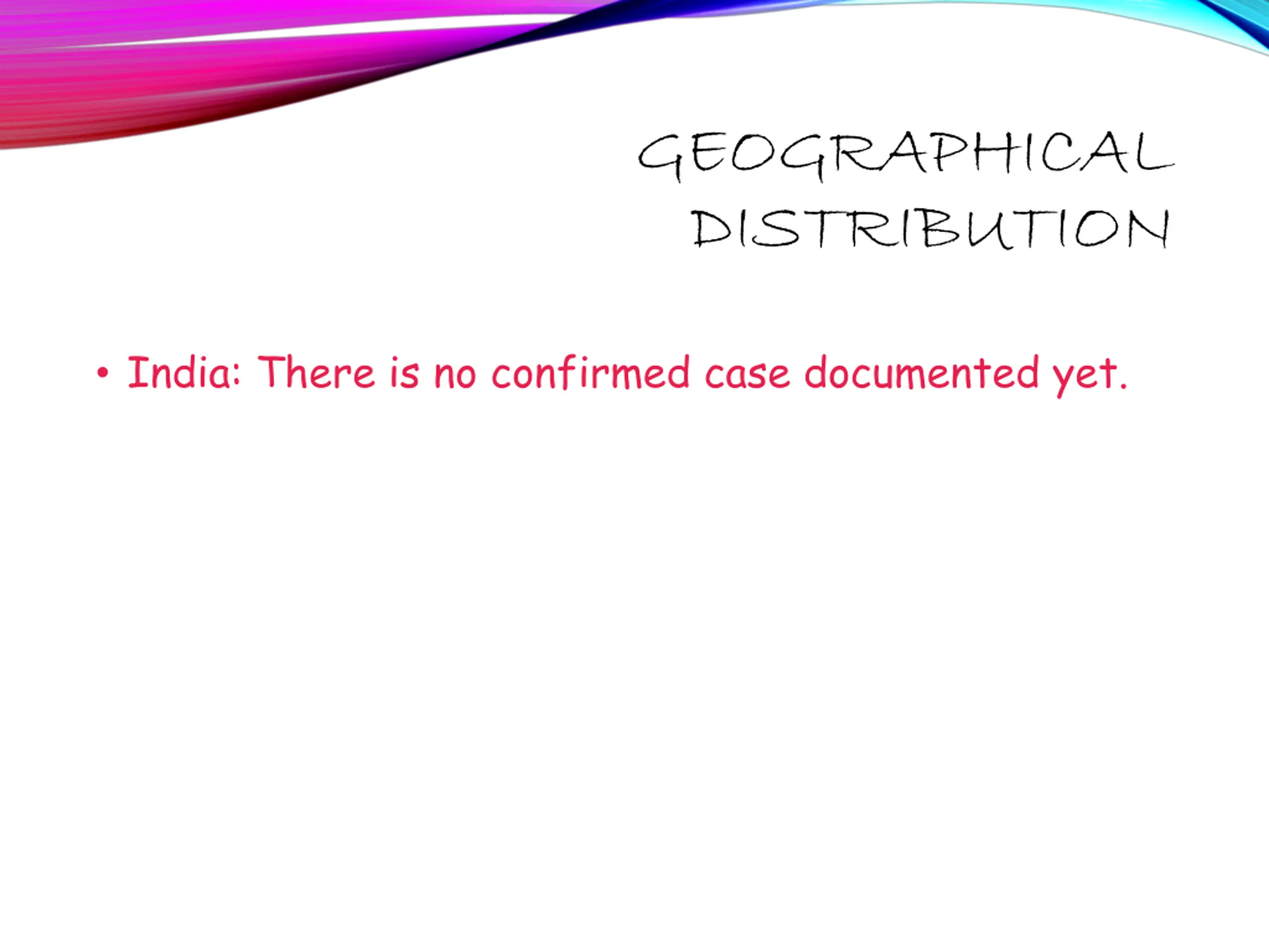 GEOGRAPHICAL DISTRIBUTION India: There is no confirmed case documented yet.