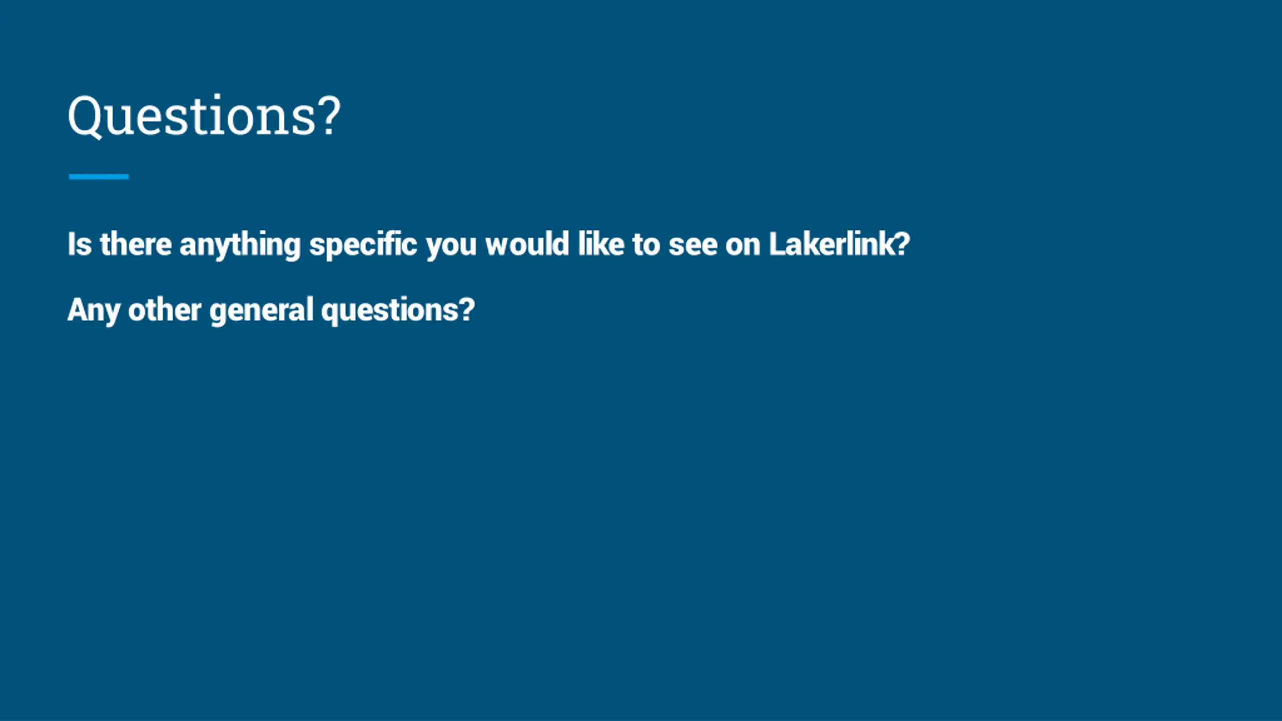 Questions? Is there anything specific you would like to see on Lakerlink? Any other general questions?