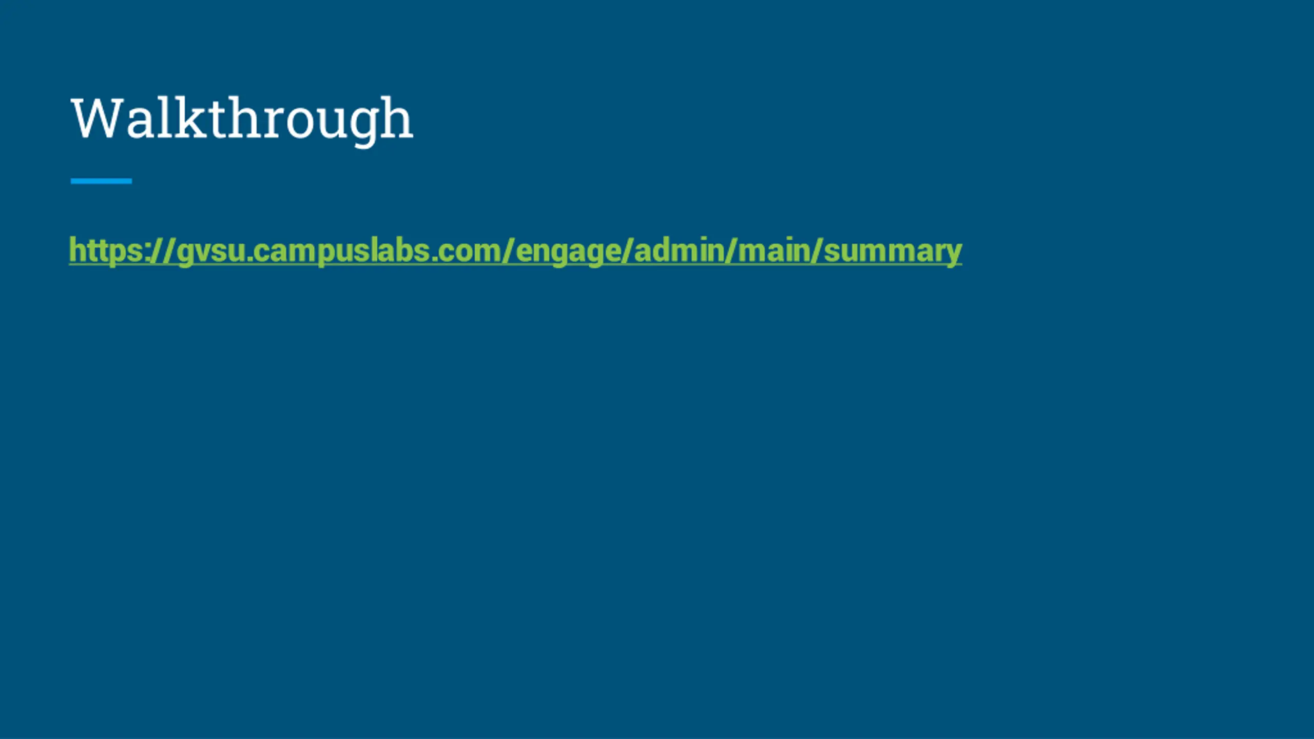 Walkthrough https://gvsu.campuslabs.com/engage/admin/main/summary