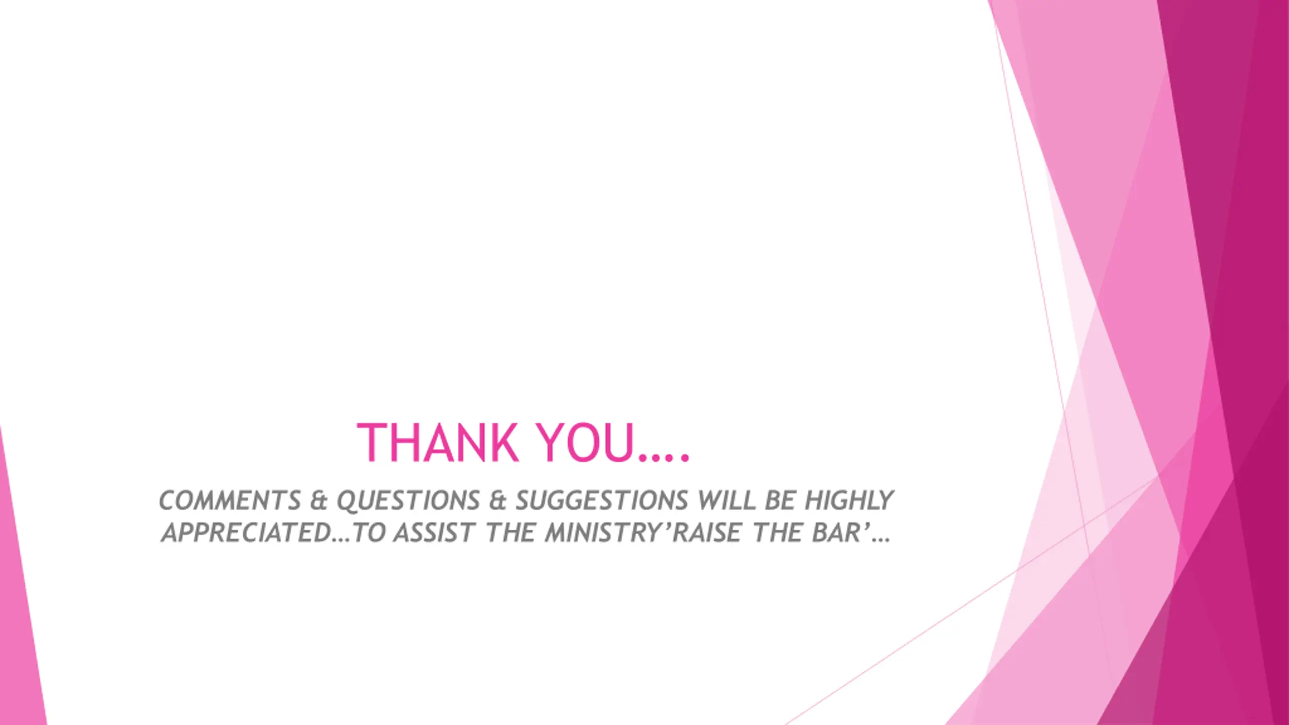THANK YOU. COMMENTS & QUESTIONS & SUGGESTIONS WILL BE HIGHLY APPRECIATED TO ASSIST THE MINISTRY RAISE THE BAR
