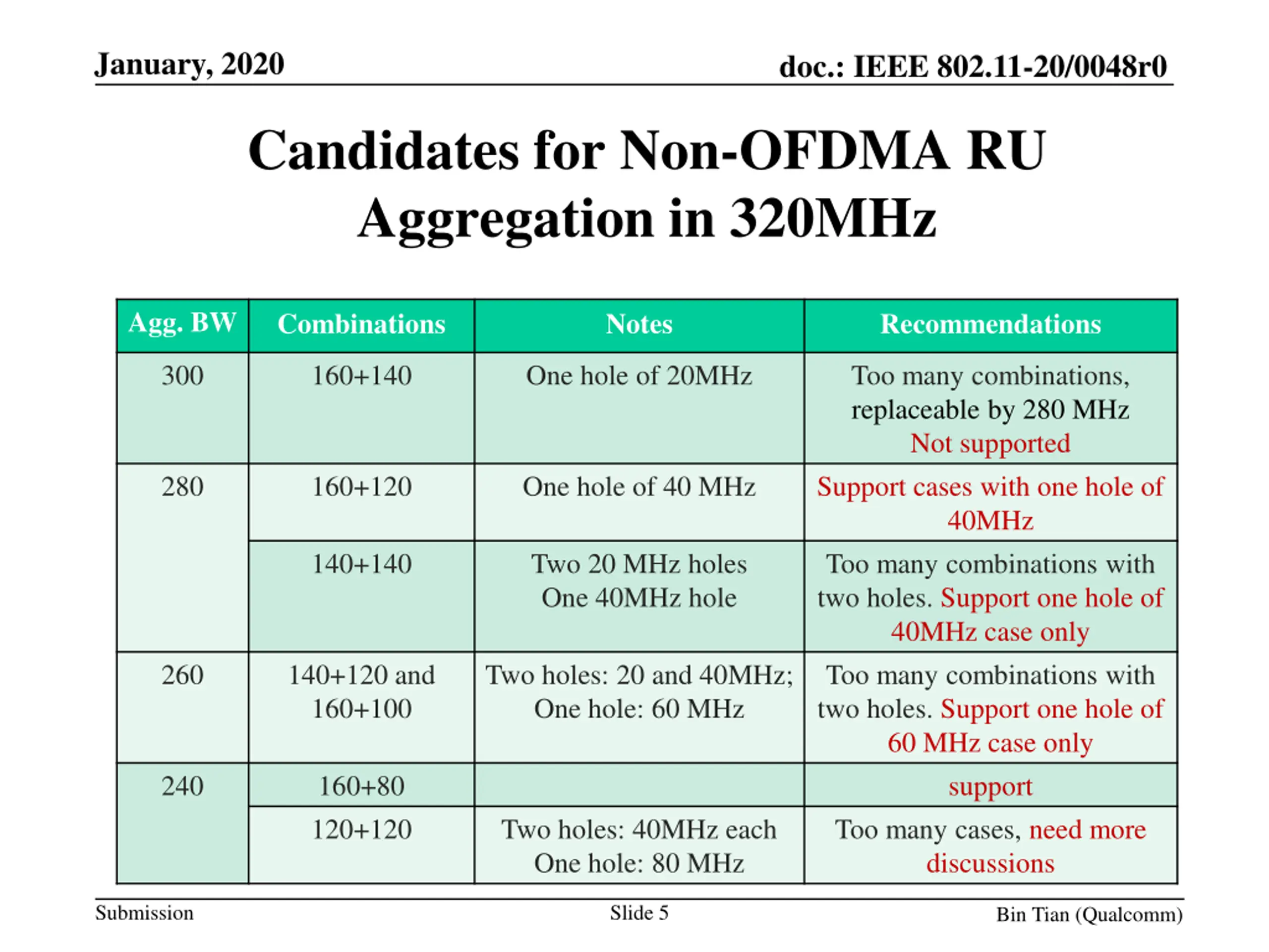 Large RU Aggregation Combinations for 240 and 320 MHz - IEEE 802.11-20/0048r0 Overview