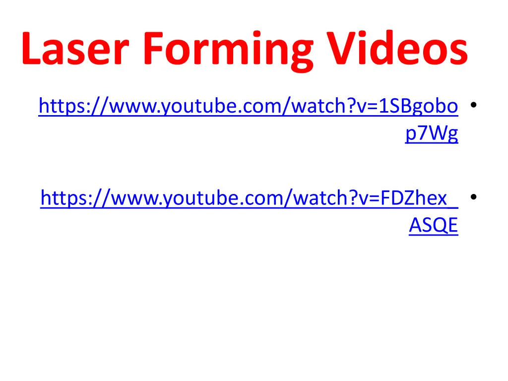 Laser Forming Videos https://www.youtube.com/watch?v=1SBgobo p7Wg https://www.youtube.com/watch?v=FDZhex_ ASQE