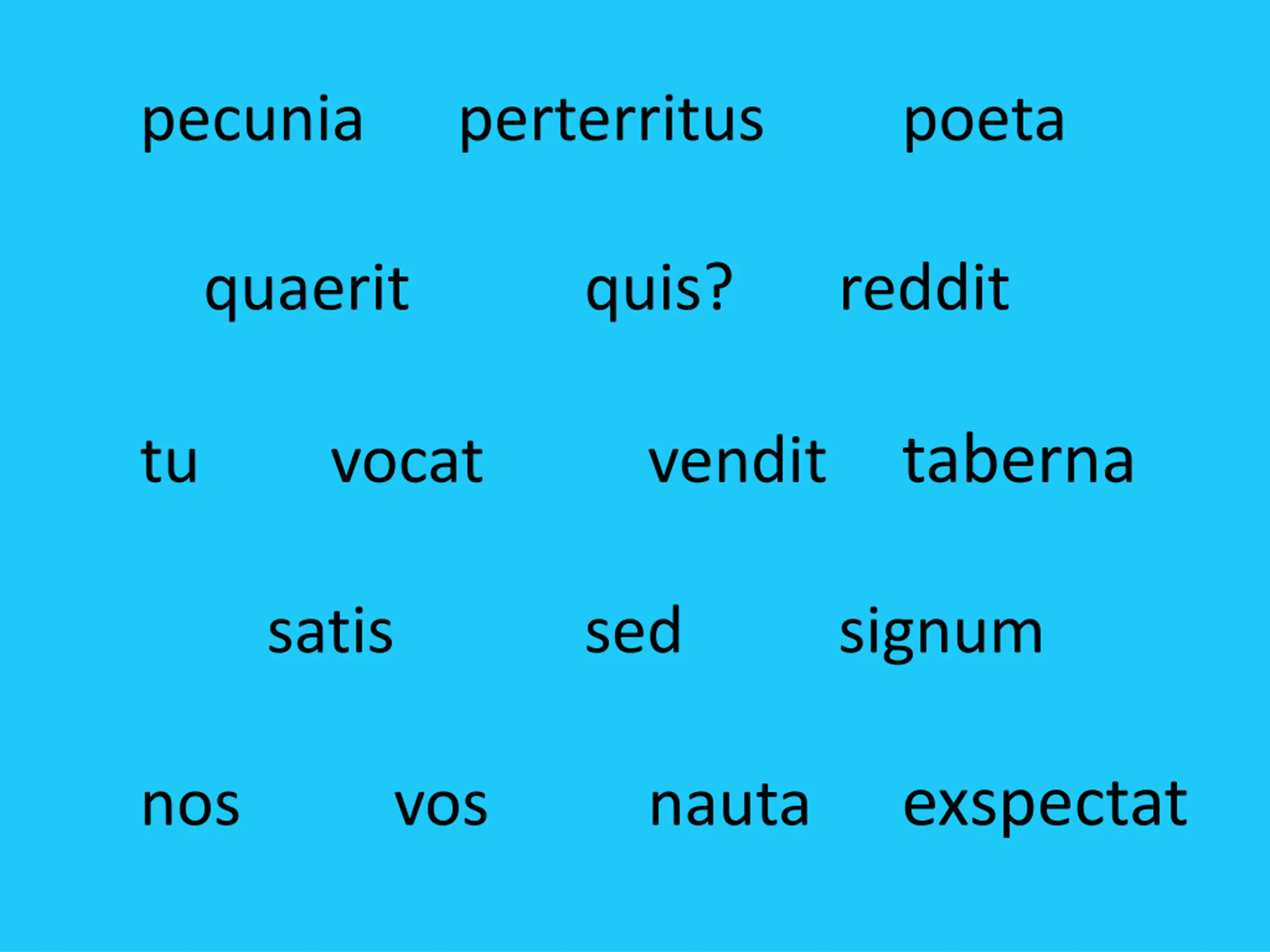 pecunia perterritus poeta quaerit quis? reddit tu vocat vendit taberna satis sed signum nos vos nauta exspectat