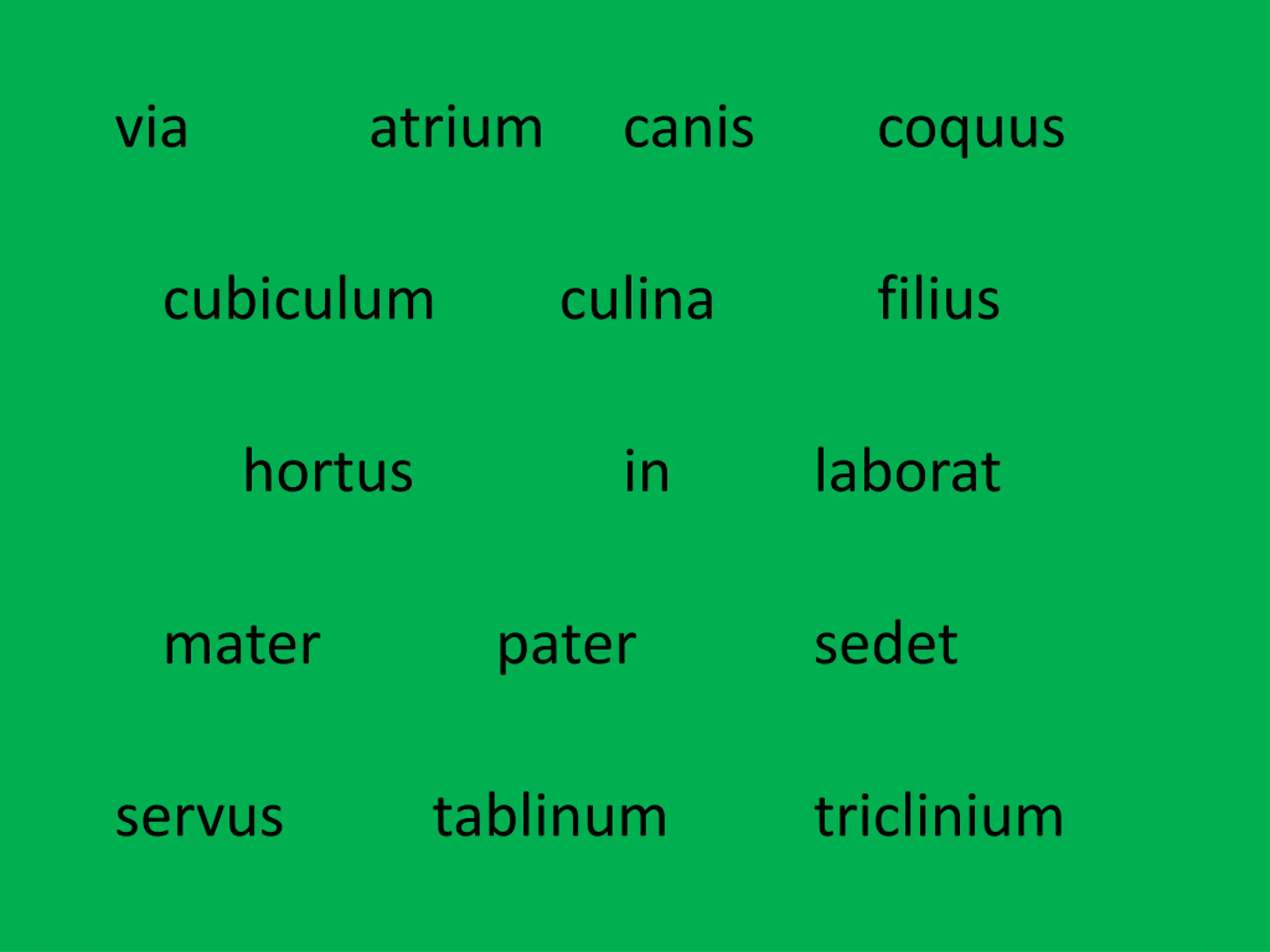via atrium canis coquus cubiculum culina filius hortus in laborat mater pater sedet servus tablinum triclinium