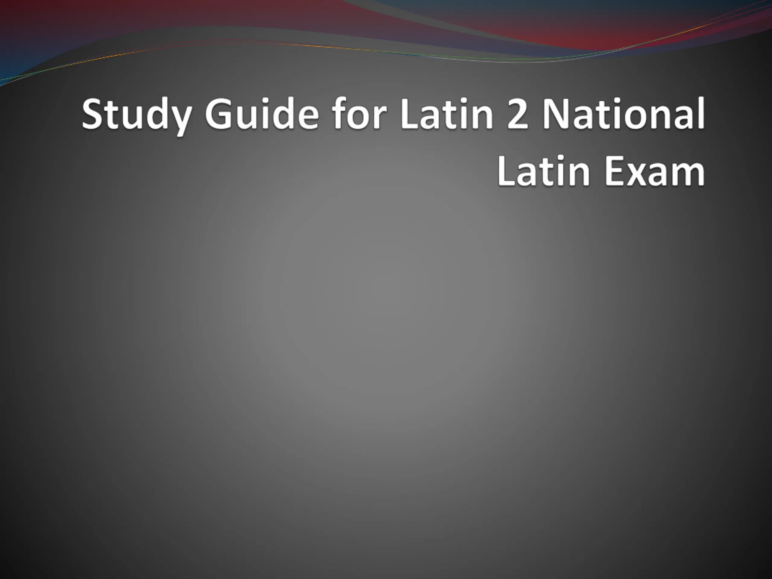 -Roman life: -city of Rome, e.g., Forum, Circus Maximus, Colosseum; Palatine Hill, Via Appia, Curia -basic housing, e.g., villa, atrium; triclinium, insulae -clothing, e.g., toga, tunica, stola; -Roman household, e.g., pater, mater, servus, filius, filia -meals, e.g., ientaculum, prandium, cena, culina -architectural structures and their functions: e.g., aqueduct, thermae (baths), circus, (chariot racing) amphitheater (gladiatorial battles), curia (senate house), theatrum (theater, stage performances) basilica, (law courts)