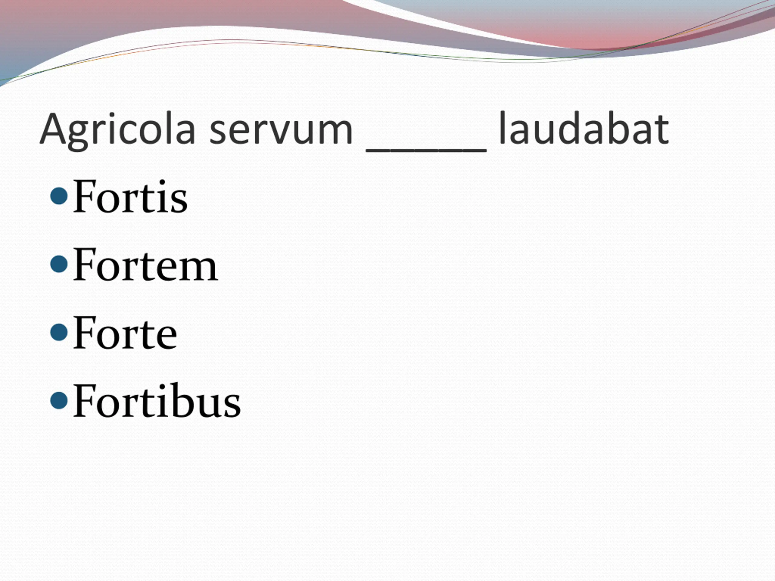 Agricola servum _____ laudabat Fortis Fortem Forte Fortibus