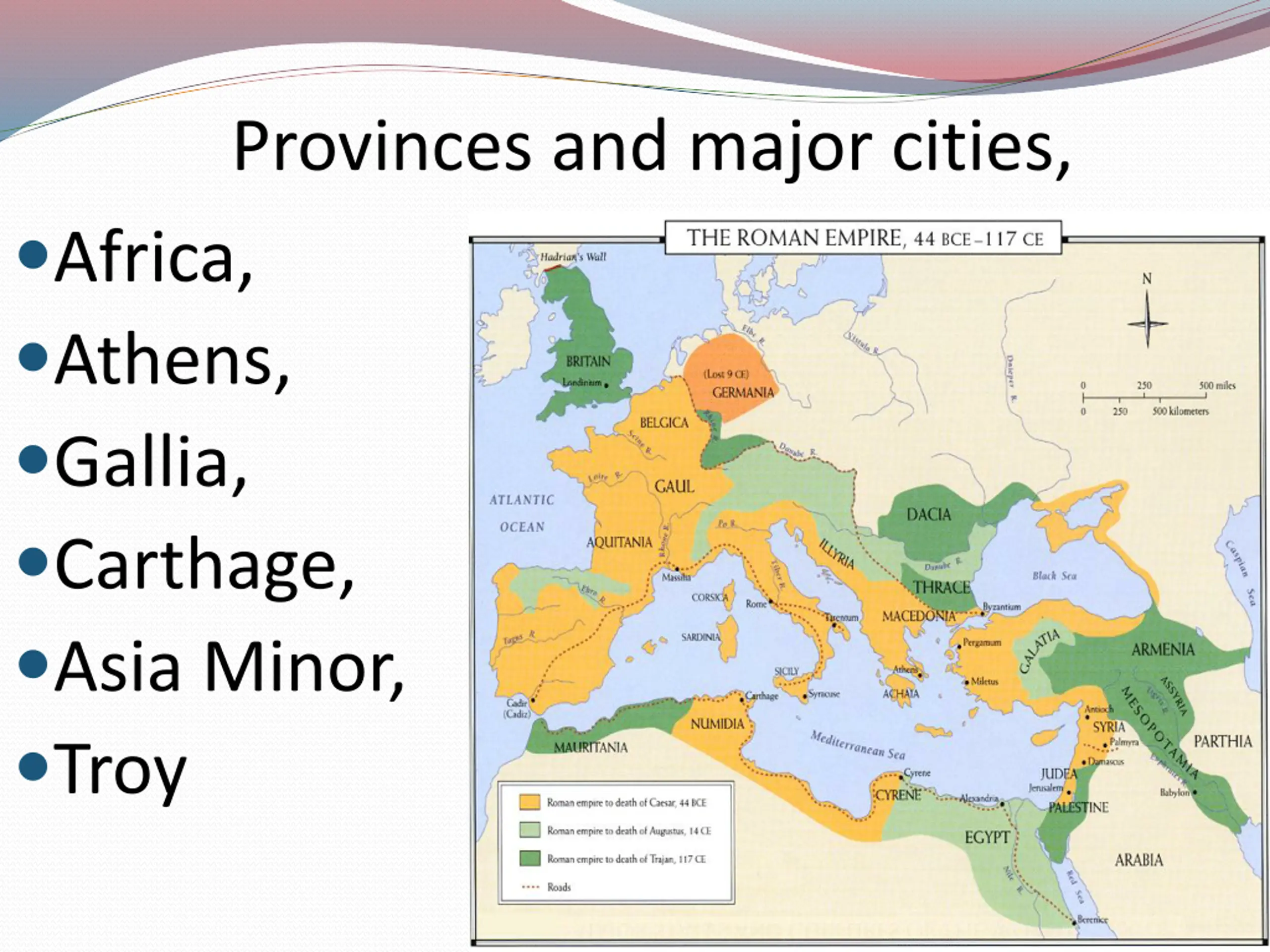 Provinces and major cities, Africa, Athens, Gallia, Carthage, Asia Minor, Troy
