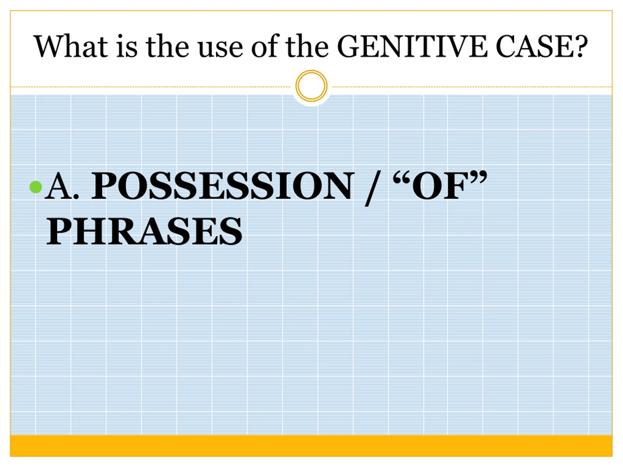What is the use of the GENITIVE CASE? A. POSSESSION / OF PHRASES