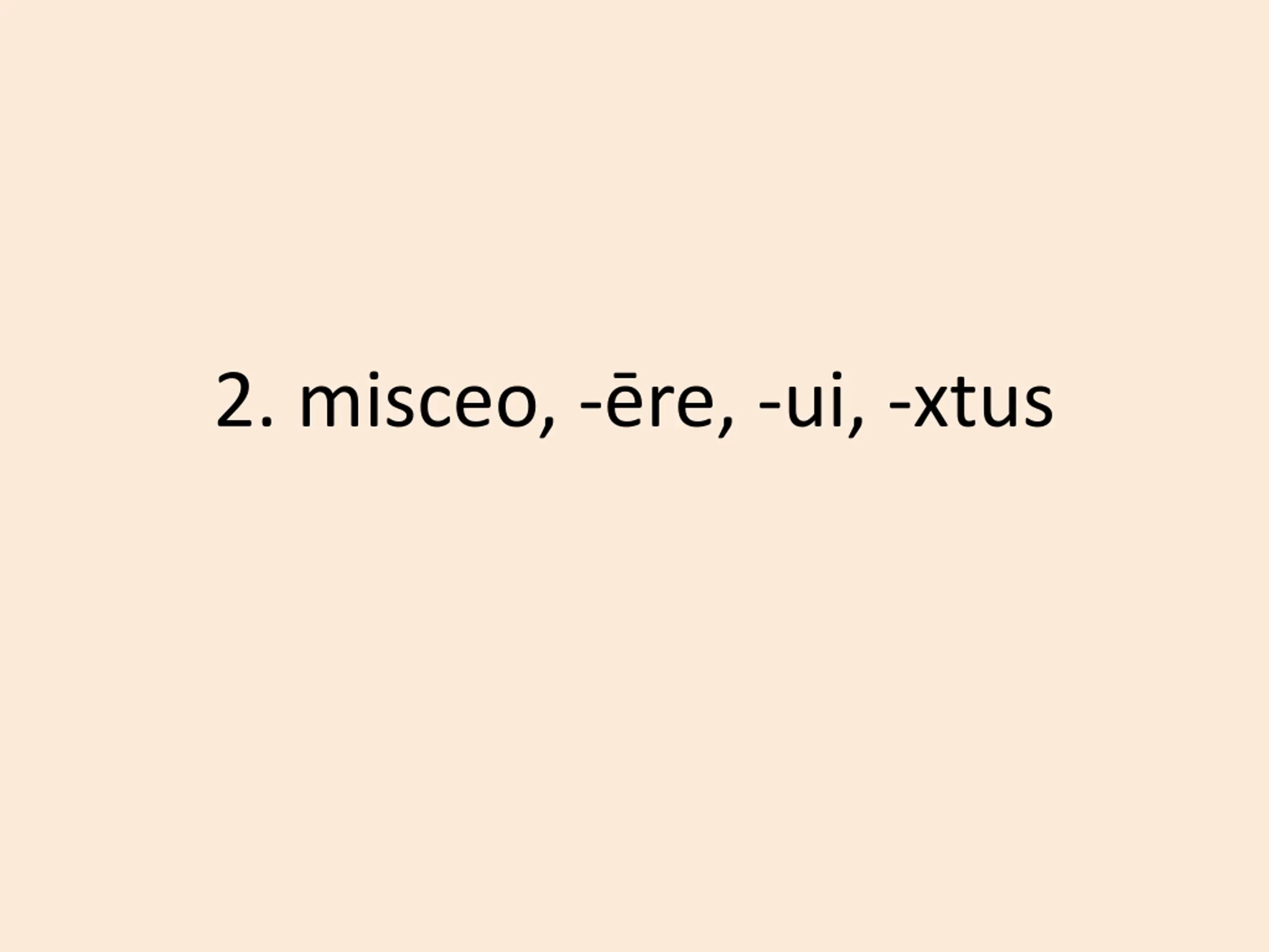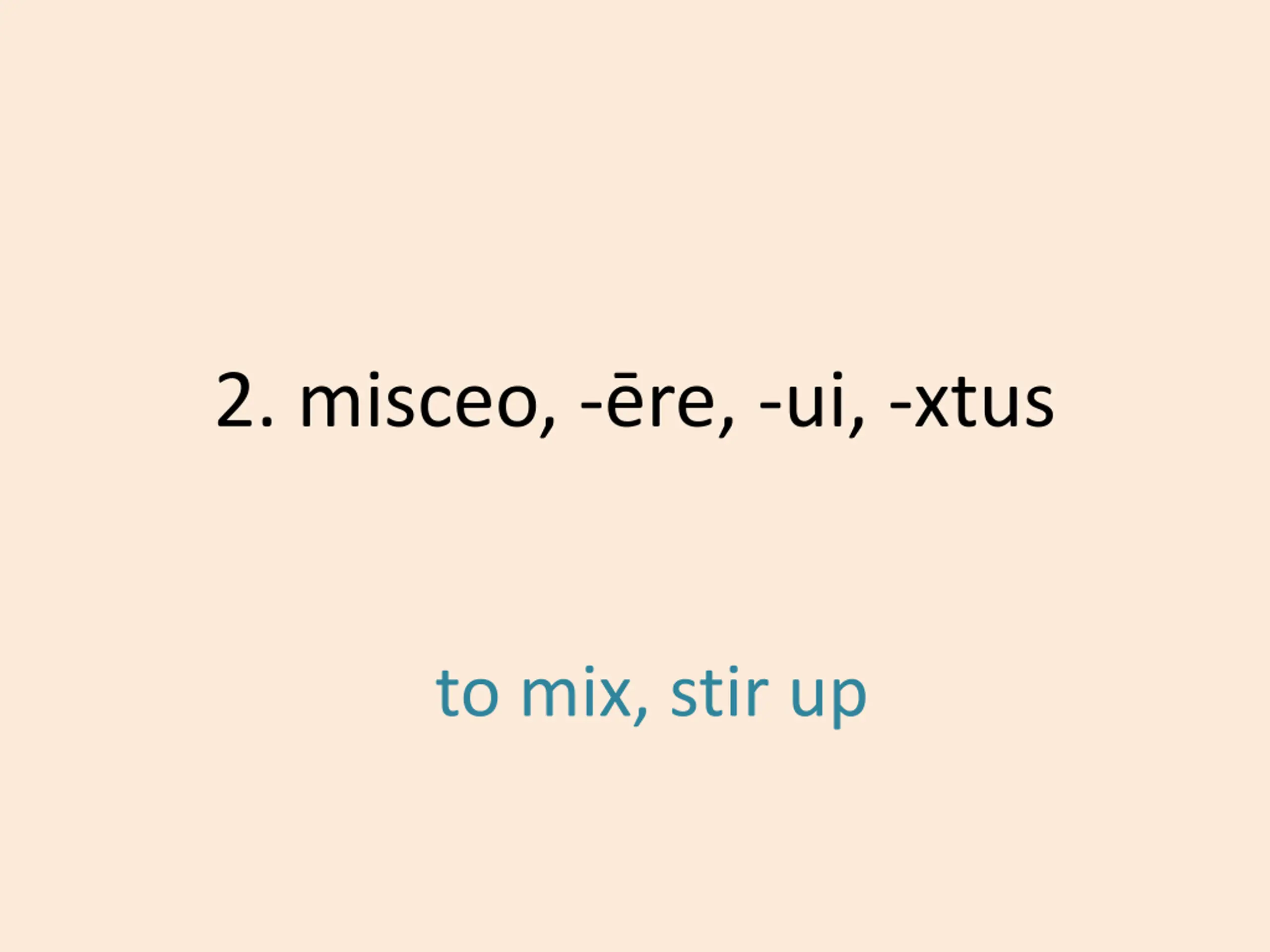 2. misceo, -re, -ui, -xtus to mix, stir up