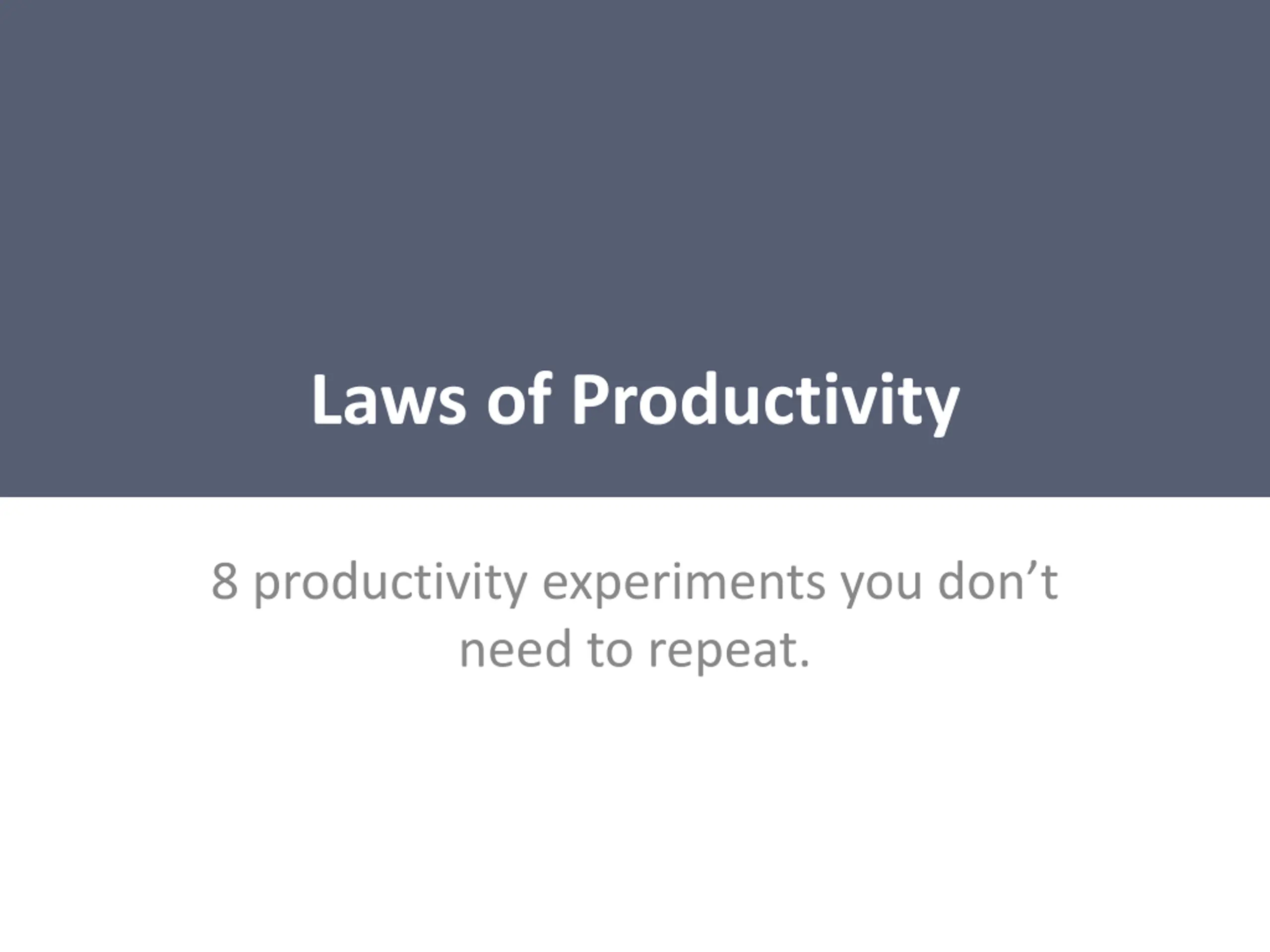 Laws of Productivity 8 productivity experiments you don t need to repeat.