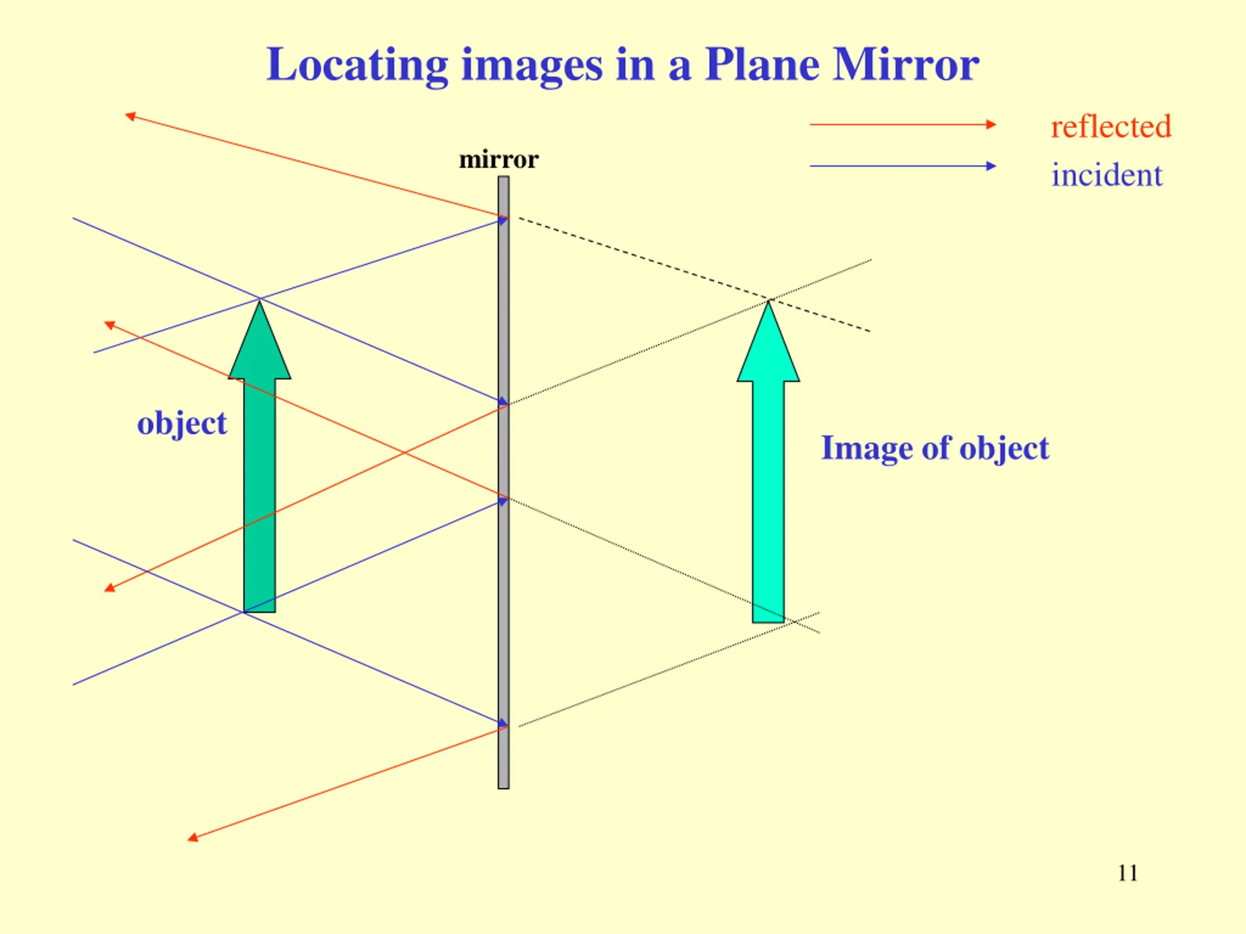 Locating images in a Plane Mirror reflected incident mirror object Image of object 11