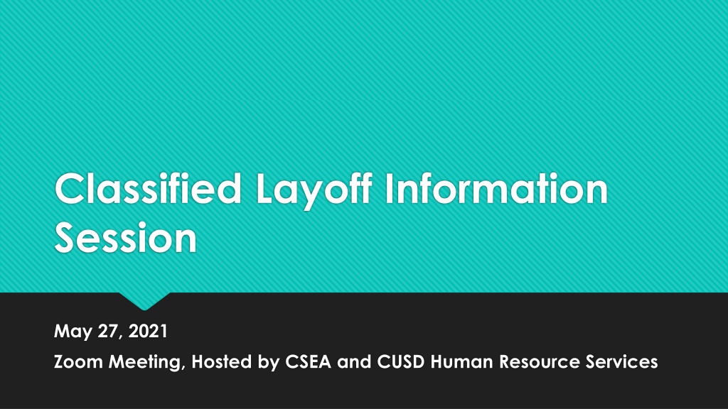 Classified Layoff Information Session May 27, 2021 Zoom Meeting, Hosted by CSEA and CUSD Human Resource Services