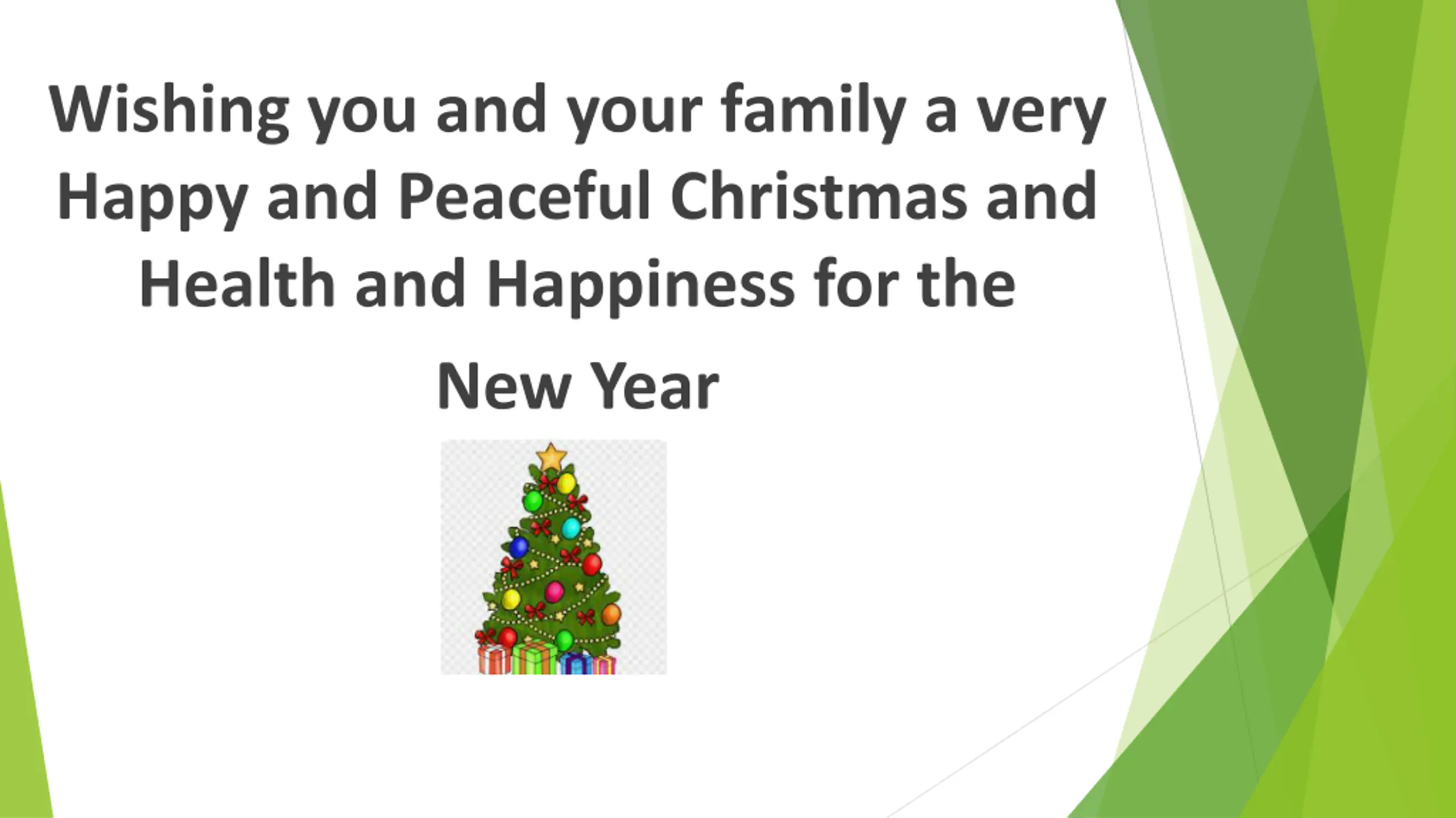 Wishing you and your family a very Happy and Peaceful Christmas and Health and Happiness for the New Year
