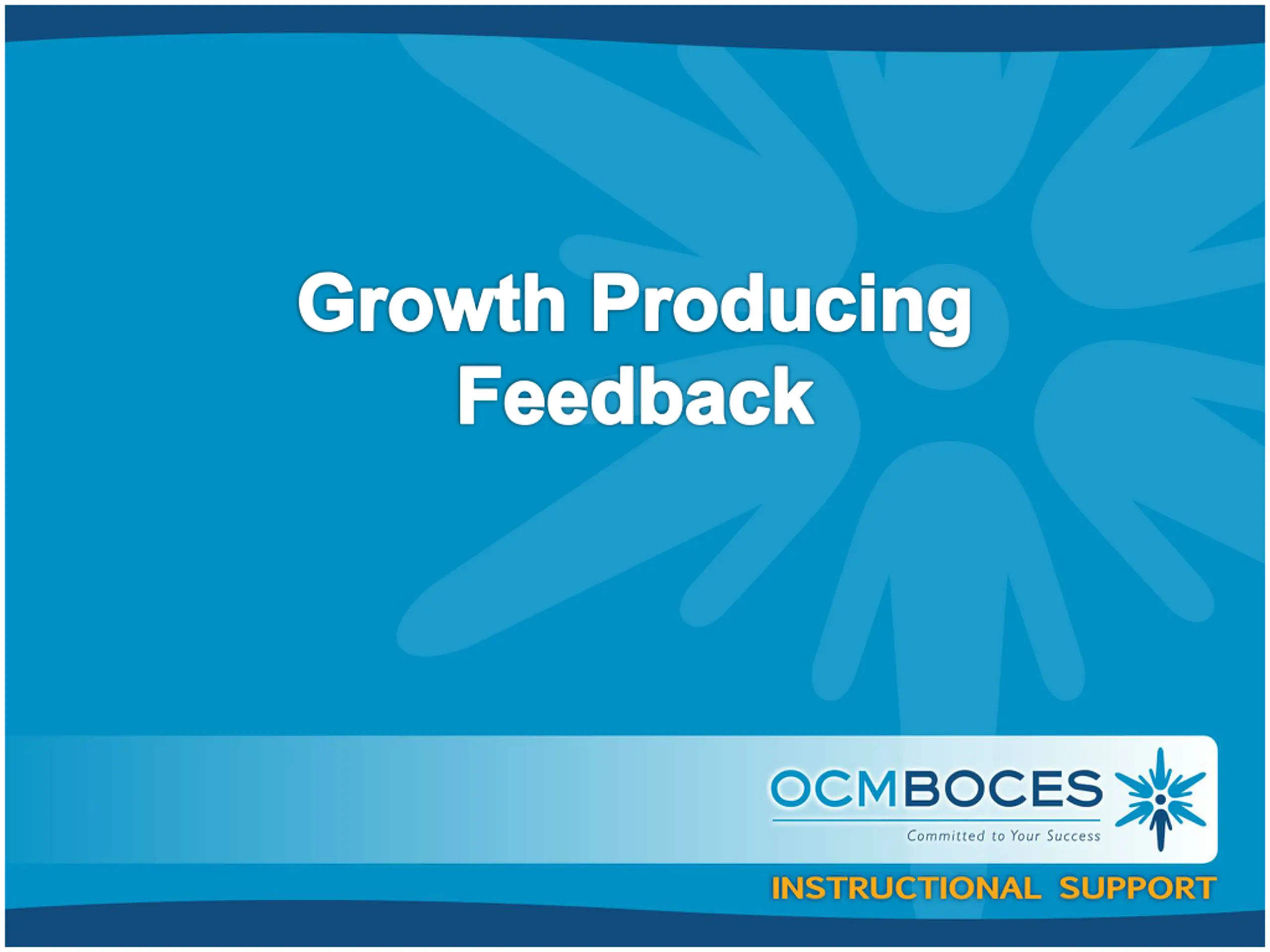 Growth Producing Feedback At your table, talk about the feedback you would give our teacher after her lesson. Talk about which C is the approach you would take with her.