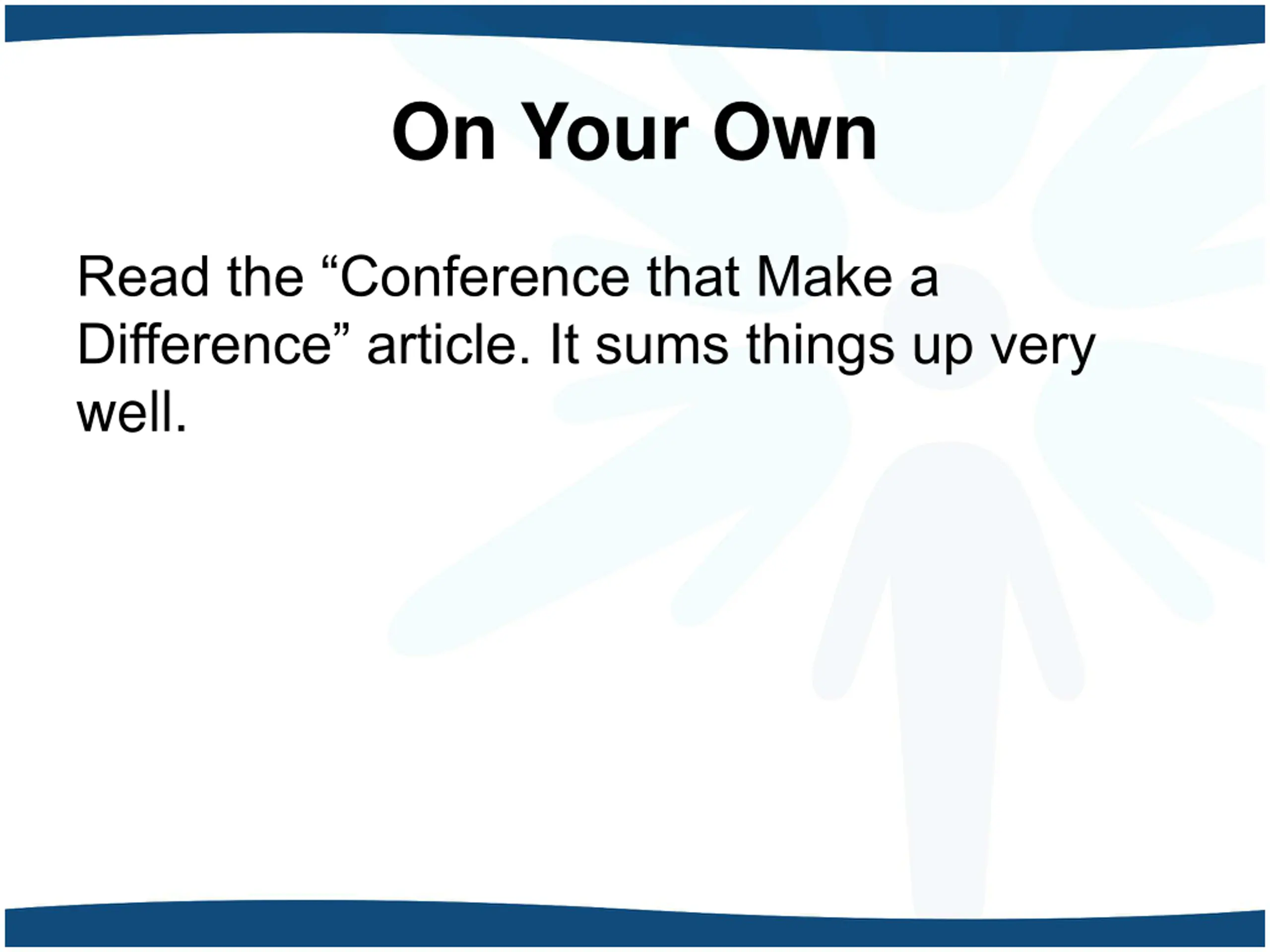On Your Own Read the Conference that Make a Difference article. It sums things up very well.