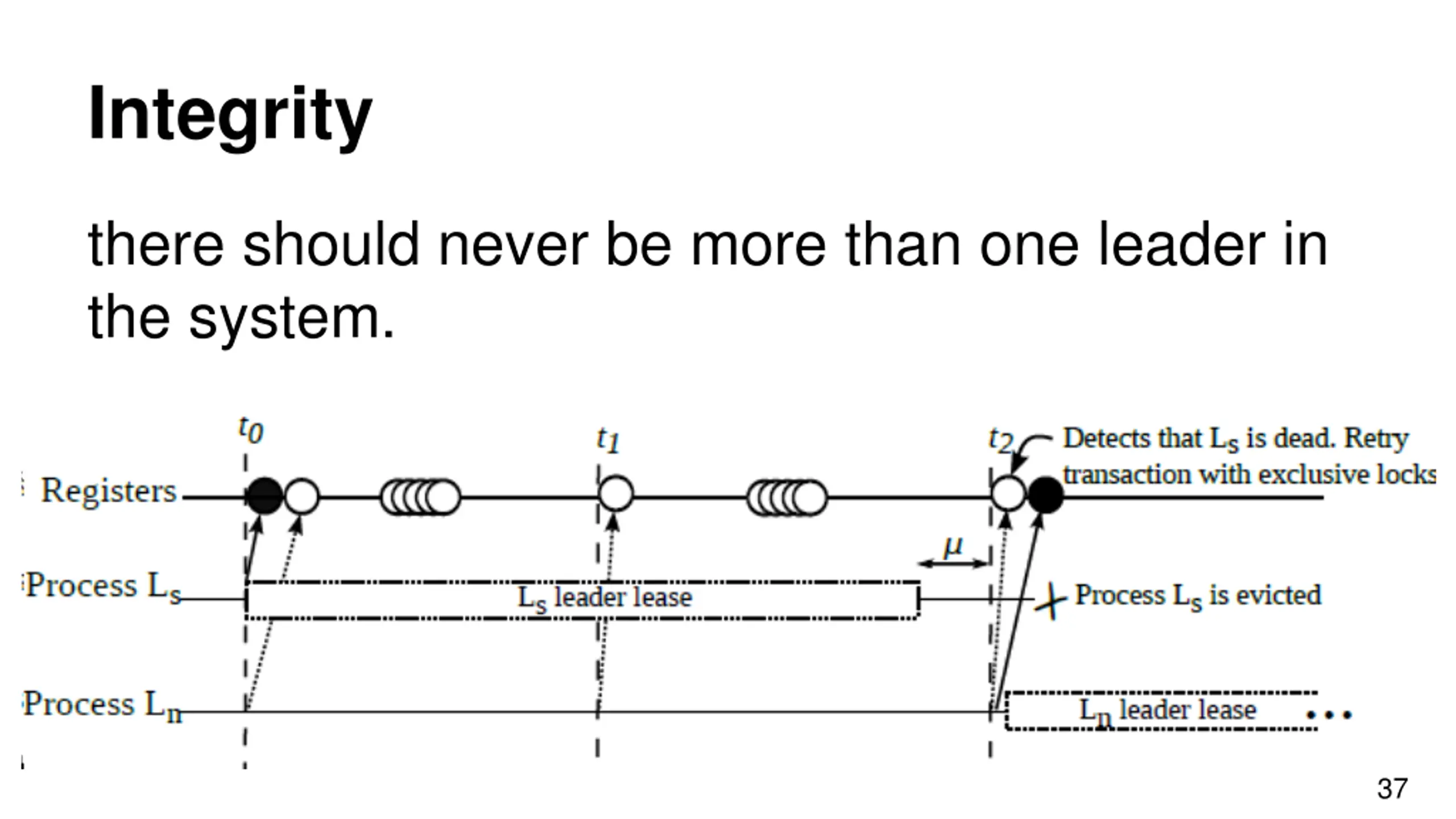 Integrity there should never be more than one leader in the system. 37