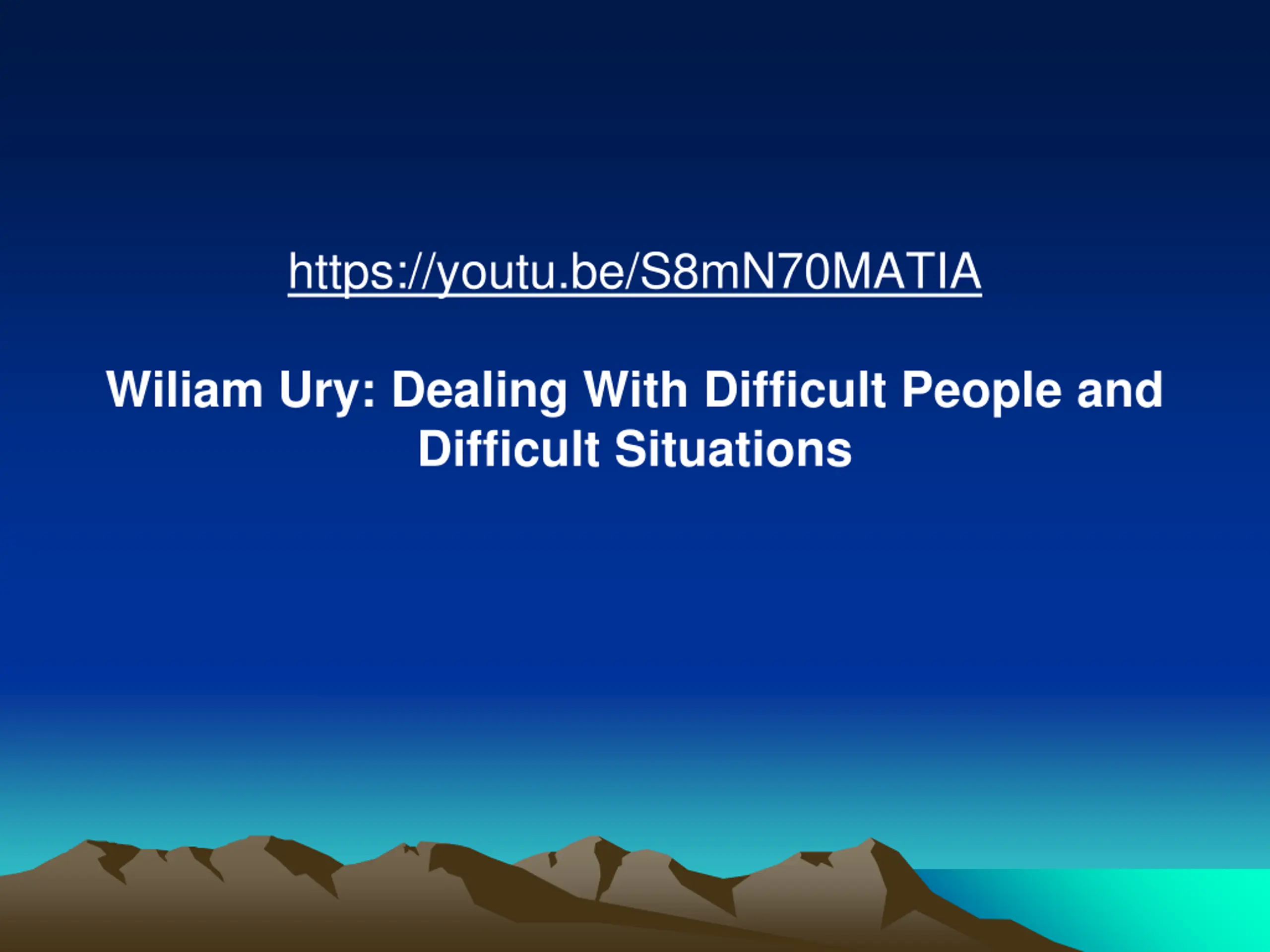 https://youtu.be/S8mN70MATIA Wiliam Ury: Dealing With Difficult People and Difficult Situations