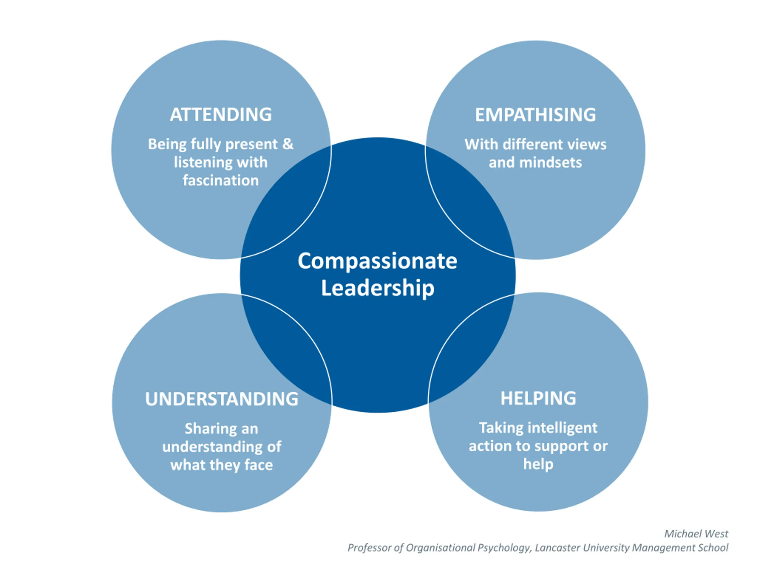 ATTENDING EMPATHISING Being fully present & listening with fascination With different views and mindsets Compassionate Leadership HELPING UNDERSTANDING Taking intelligent action to support or help Sharing an understanding of what they face Michael West Professor of Organisational Psychology, Lancaster University Management School
