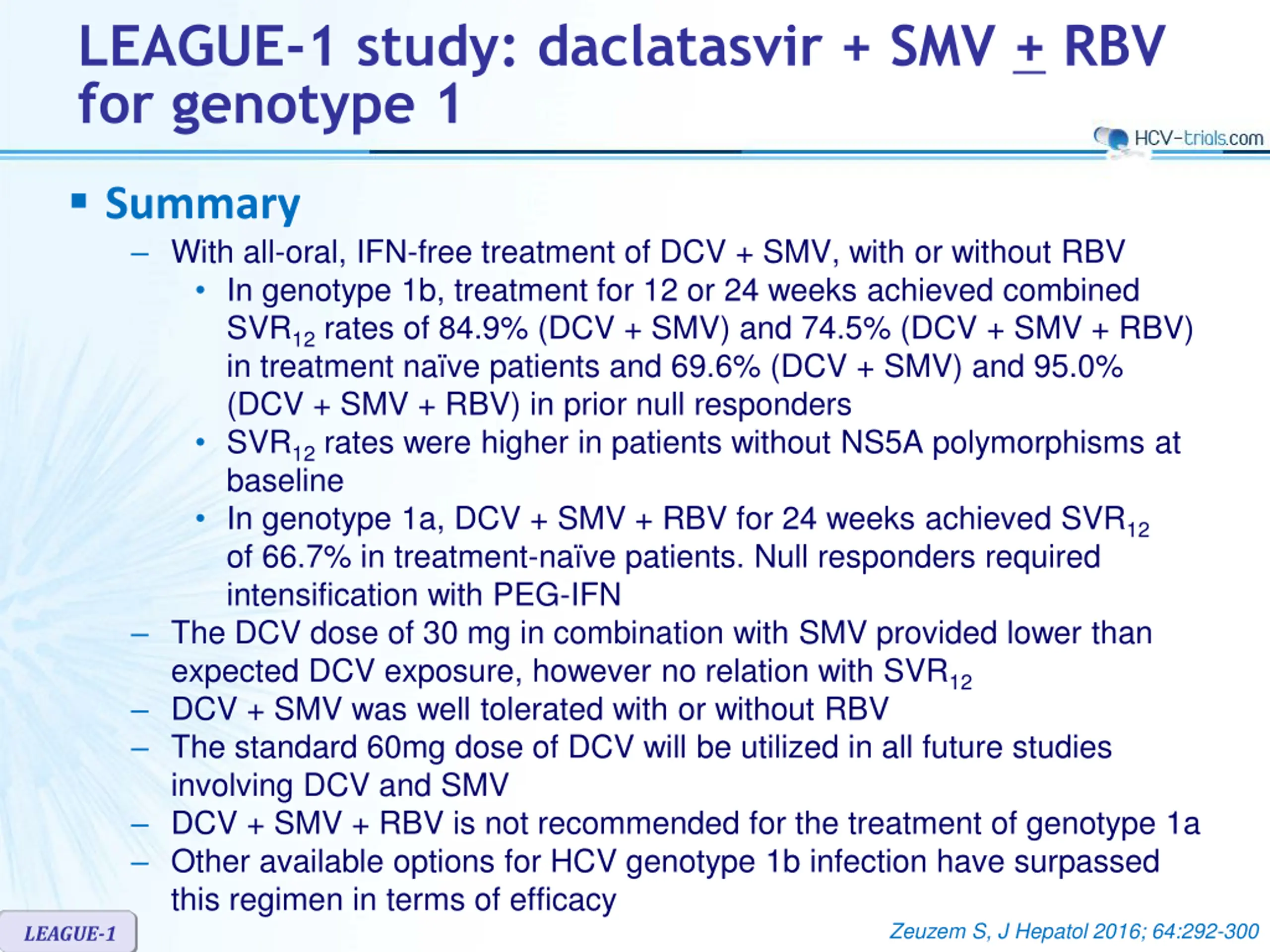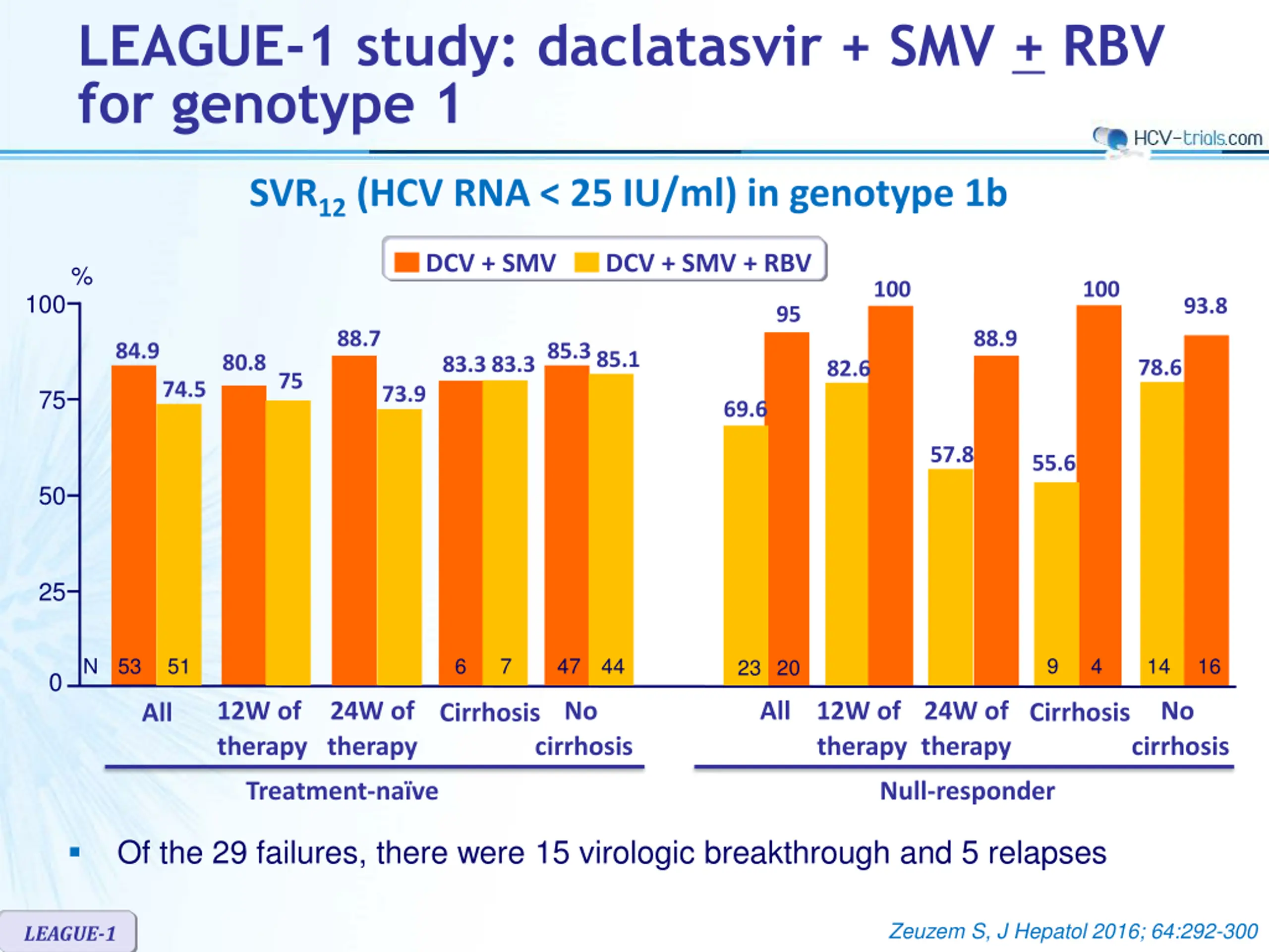 LEAGUE-1 study: daclatasvir + SMV + RBV for genotype 1