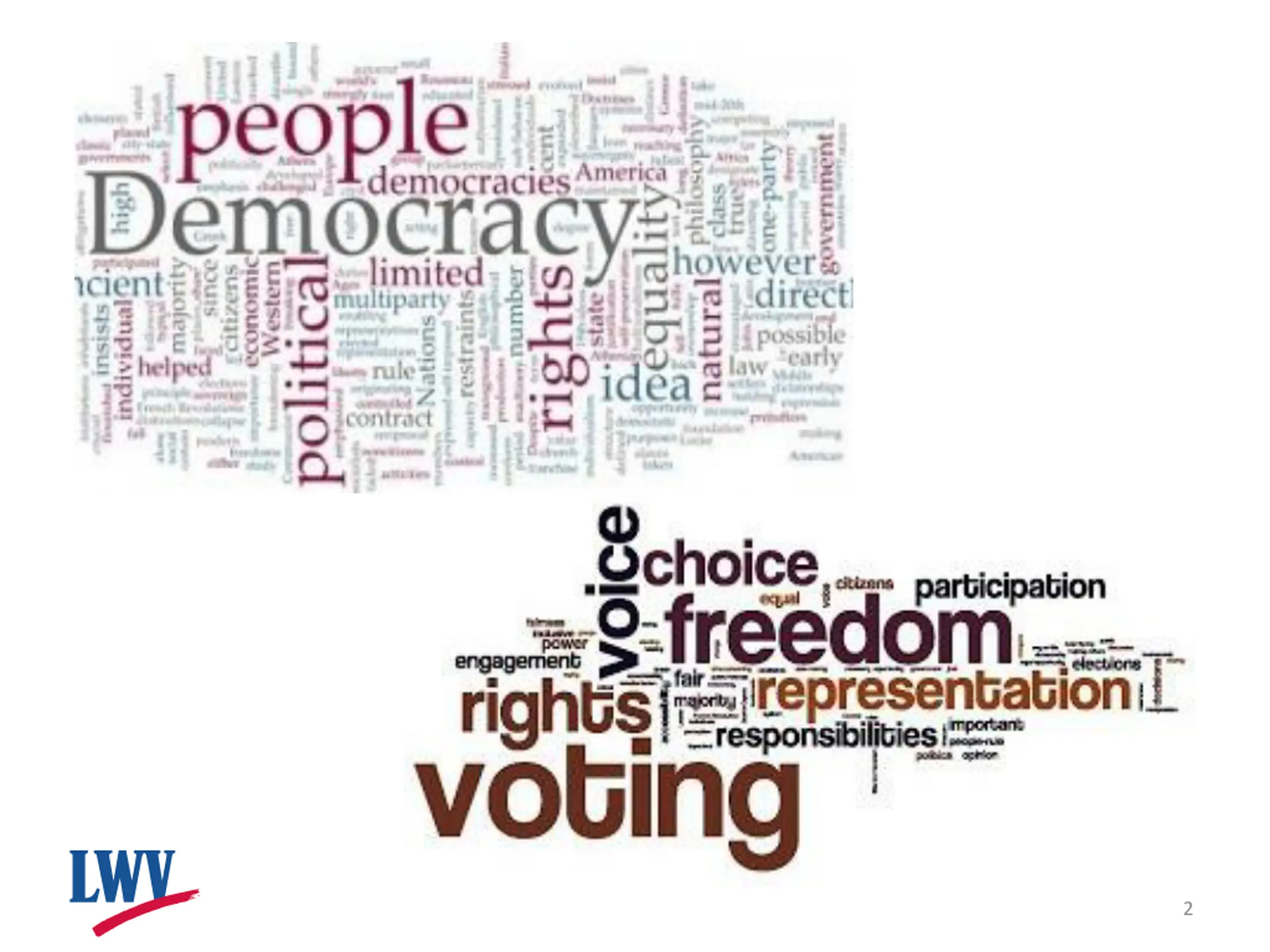 League of Women Voters CyFair The LWV is a nonpartisan, political organization that Encourages informed and active participation in government Influences public policy through education and advocacy April 2018