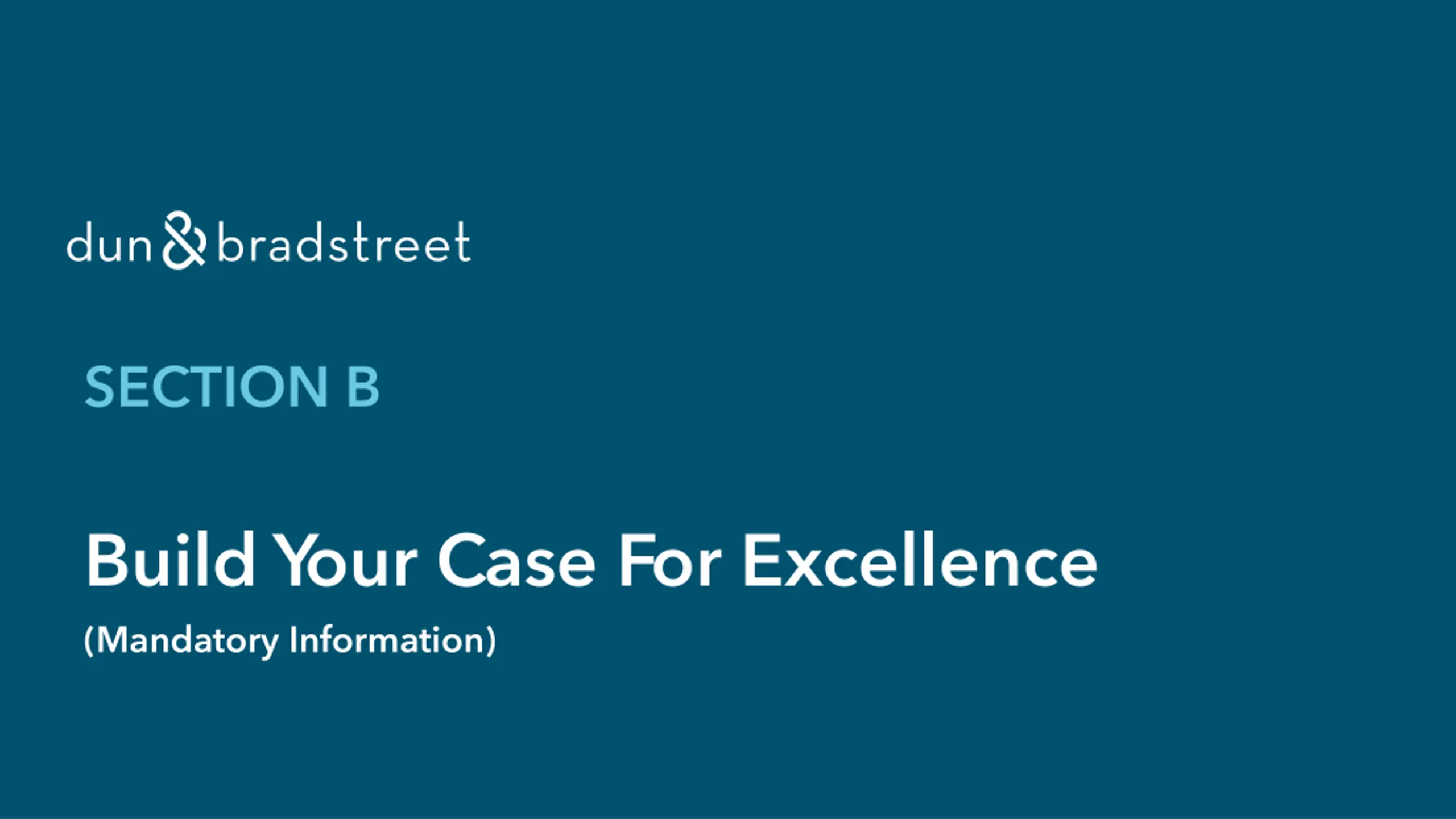 SECTION B Build Your Case For Excellence (Mandatory Information) Internal Use Only